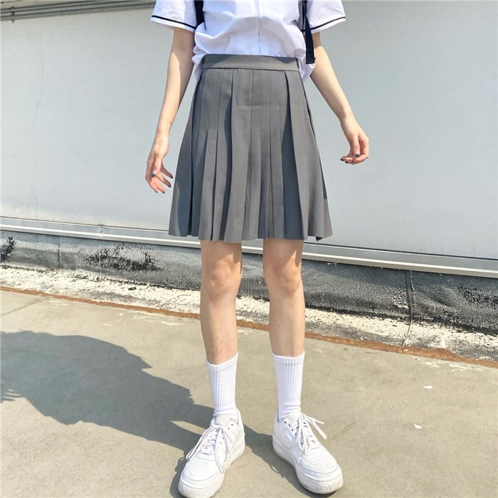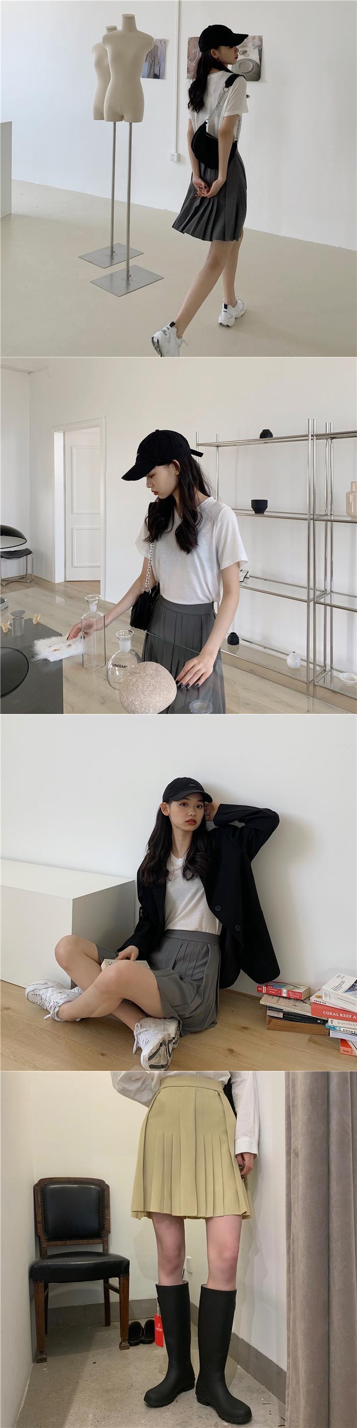 プリーツスカート サマーソリッド カラーAラインショート ハイウェスト 夏物 ソリッドカラー kumikum57702543378