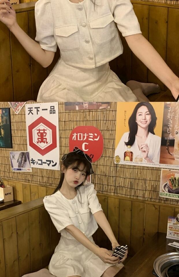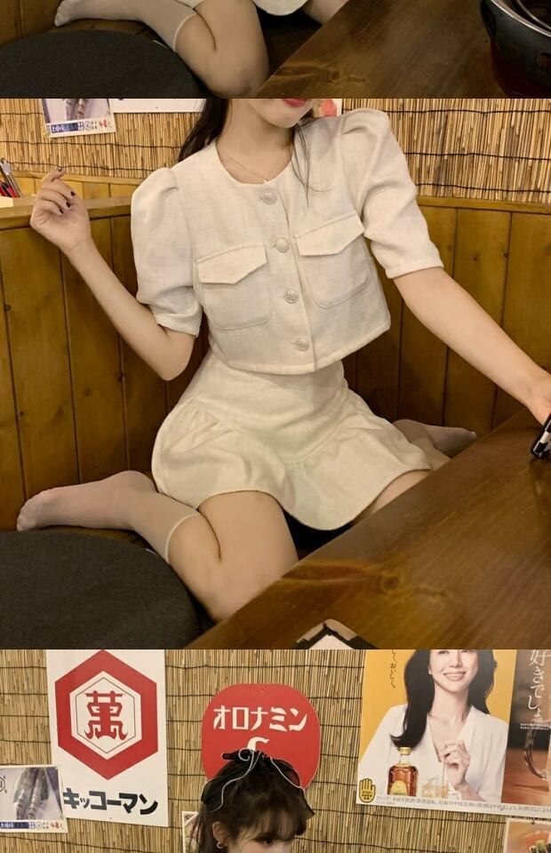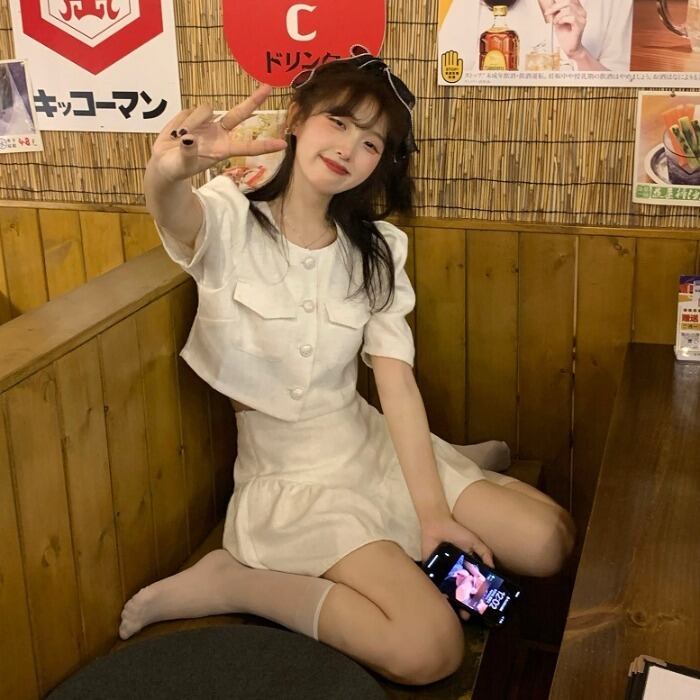 サマーショートカーディガンジャケット ハイウェストウェスト薄手Aラインスカート 夏物 kumikum47753217321