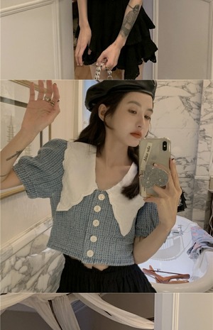 スタンダードカラーシャツ レディースサマールーズスリーブトップス レトロ 夏物 kumikum72127033007