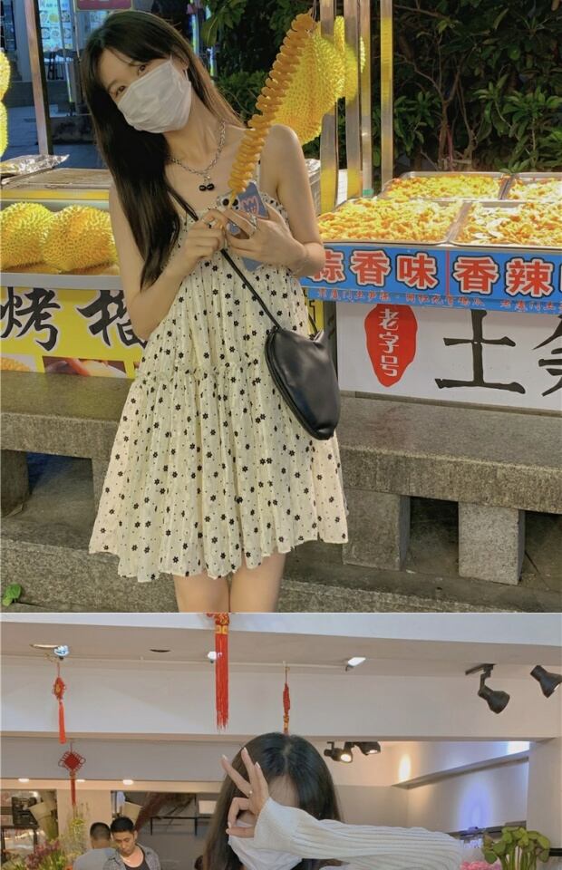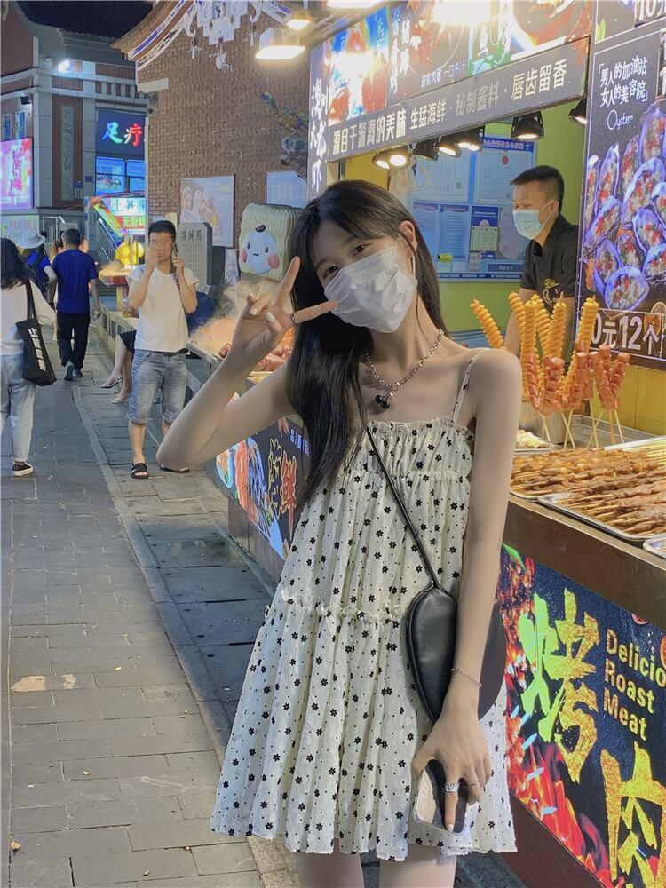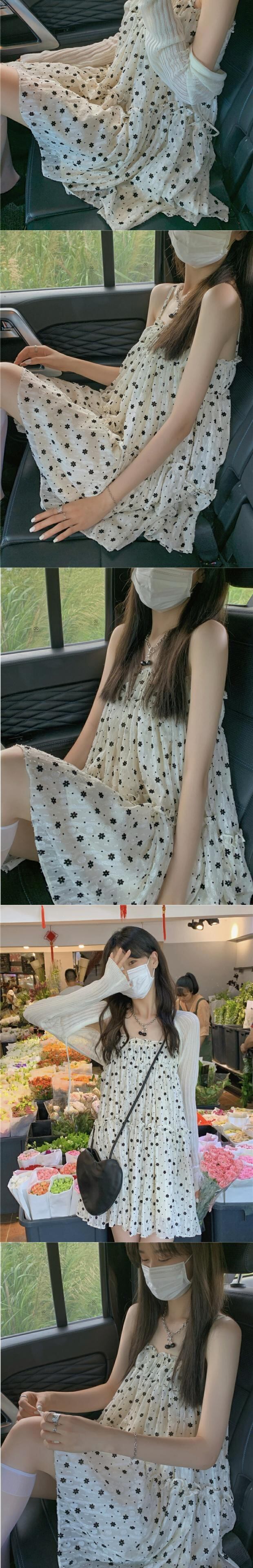 色:リトルフラワーフラワーサスペンダースカート,白いカーディガン