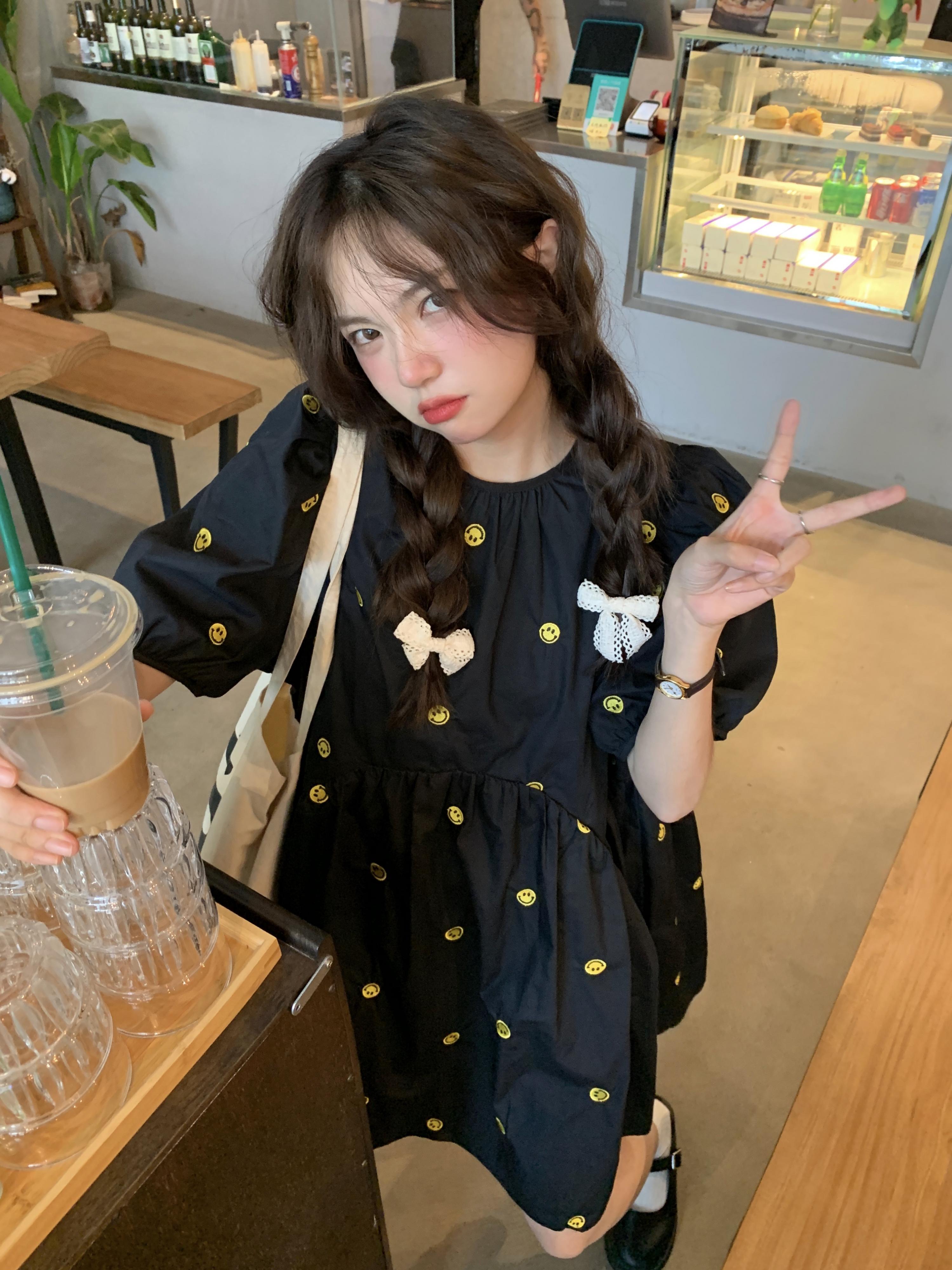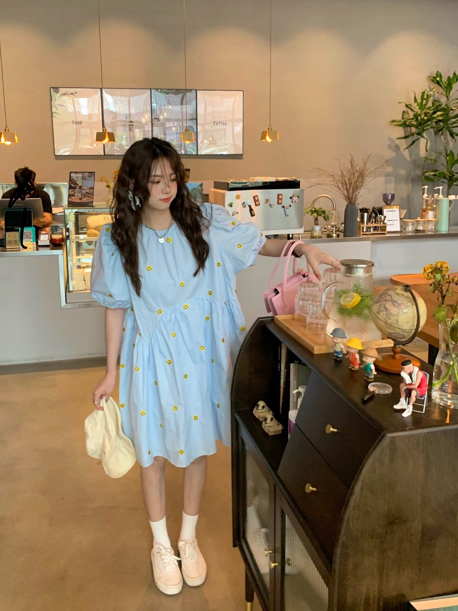 ドレス サマースタンダード刺繍スリーブルーズAラインスカート レトロ 夏物 kumikum30222963014