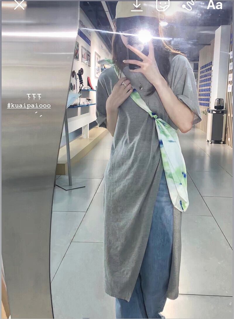 カジュアルルーズソリッド カラーTシャツ スカート サマーロングドレス レディース 夏物 ソリッドカラー kumikum64088790214