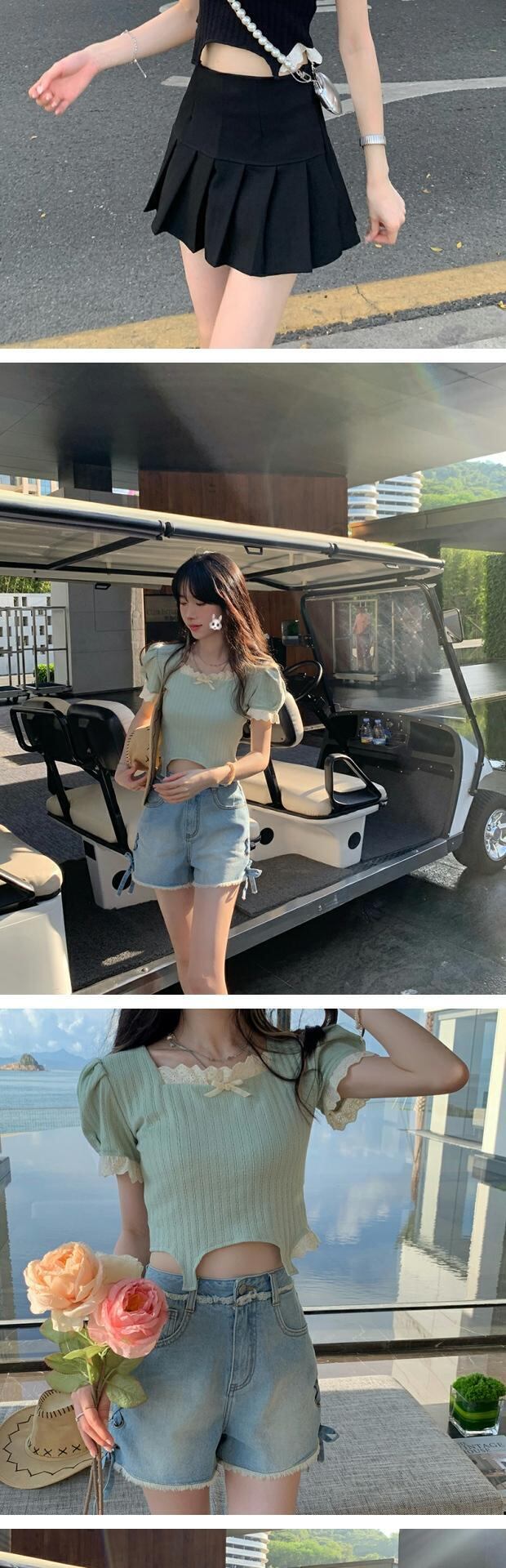 トップス サマーレーススリーブショートTシャツ 大人ガーリー スウィート キュート カジュアル 夏物 kumikum70948976015