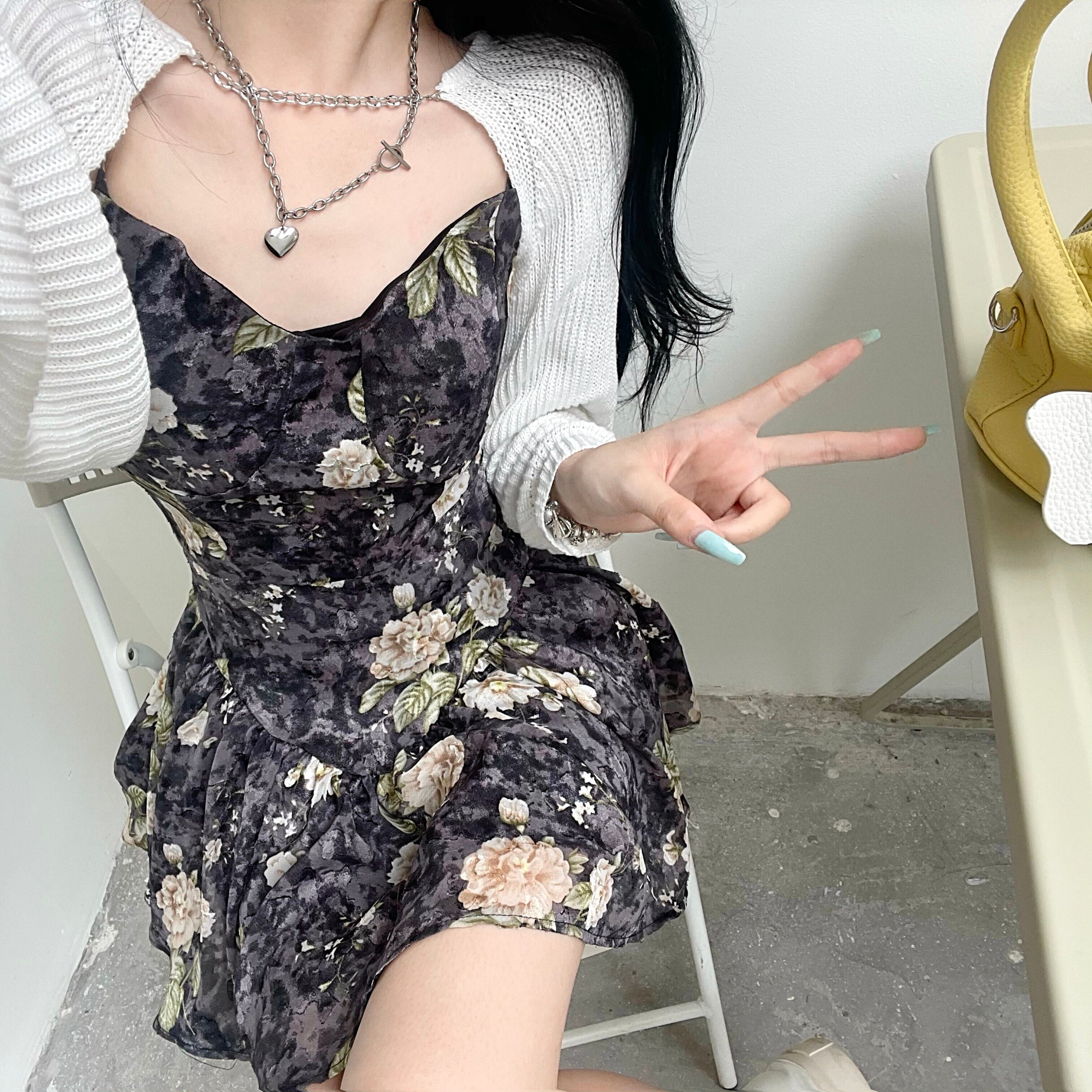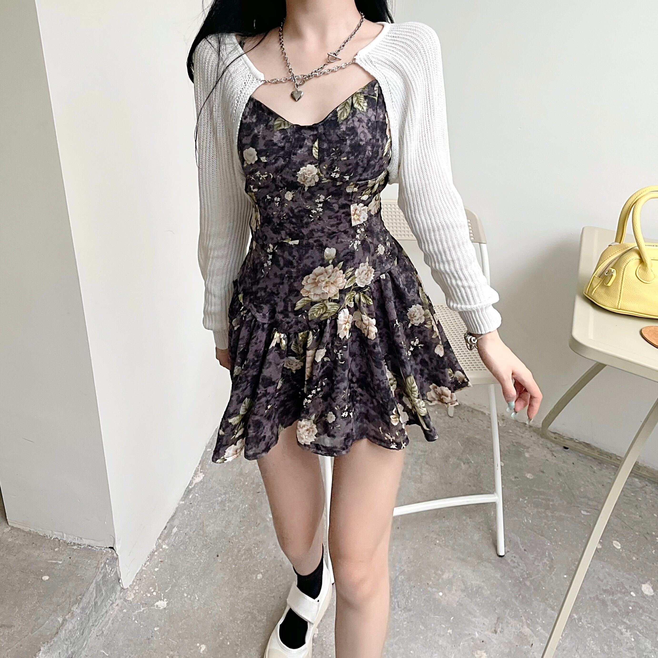色:白いカーディガン,フローラルスカートS,フローラルスカートM