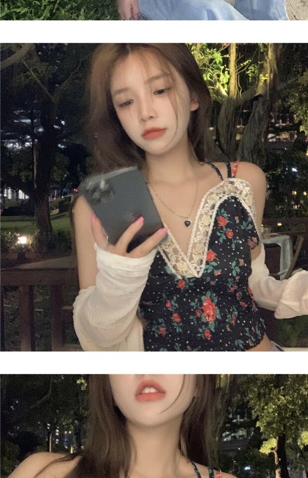 Vネックレースフローラルサマーショートノースリーブジャケット レディース 夏物 花柄 kumikum82067929838