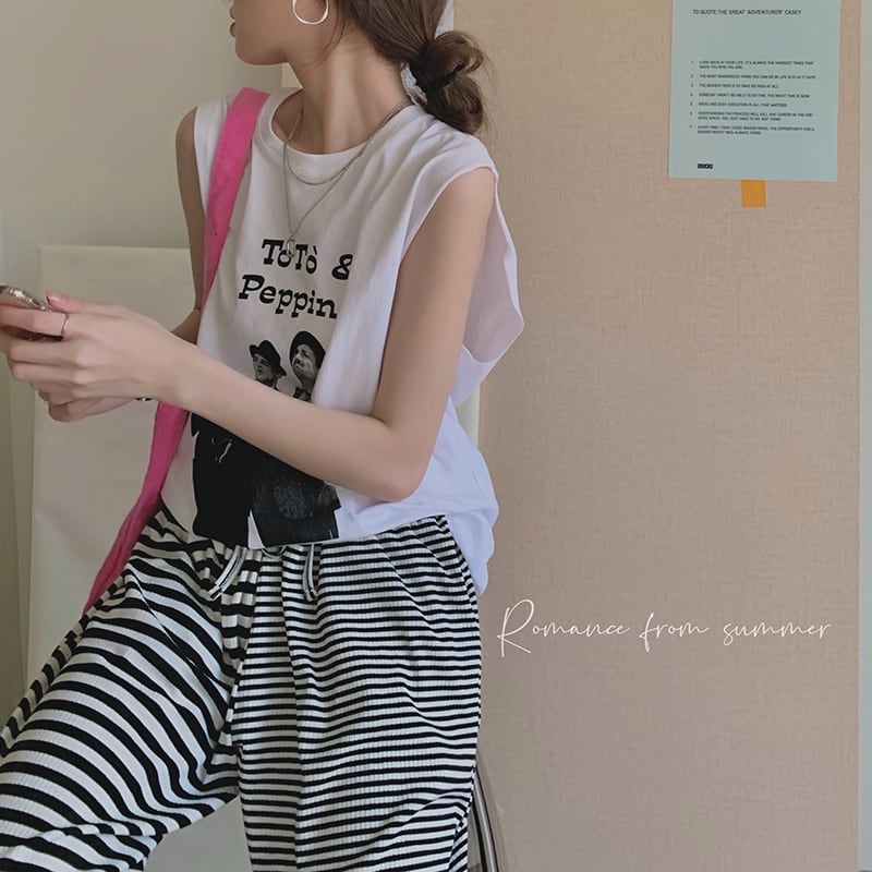 プリントトップス サマールーズノースリーブカジュアルTシャツ 夏物 kumikum22814283682
