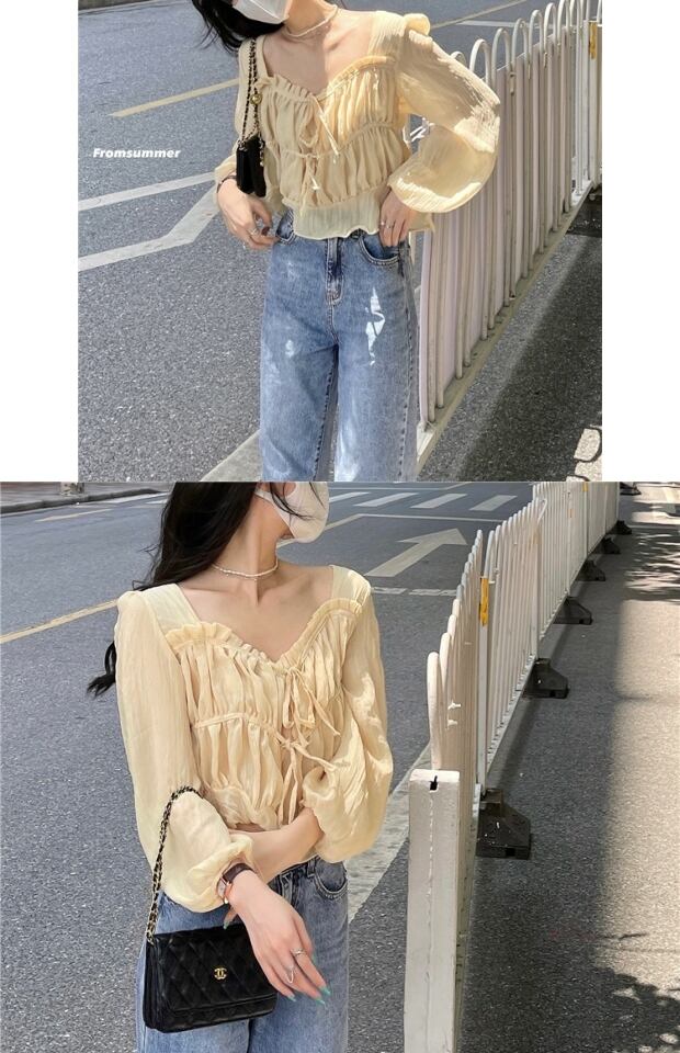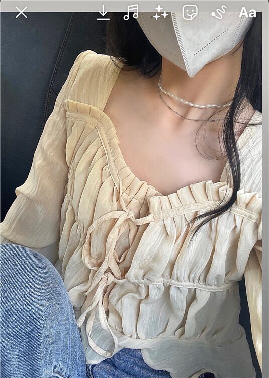 スタイルVネックシフォンシャツ サマー薄手トップス レディース ロング 夏物 kumikum39884923617