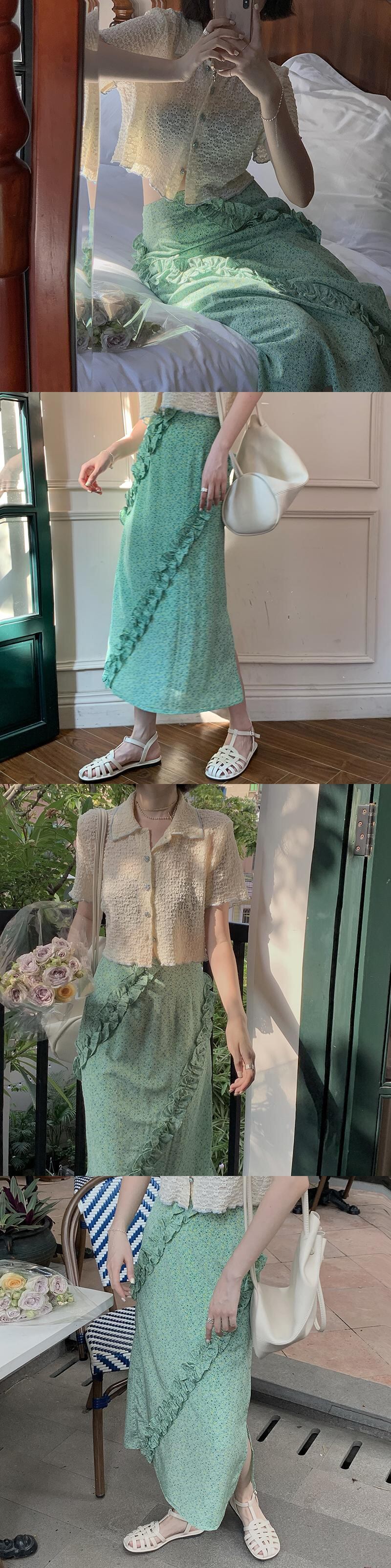 シフォンフローラルロングスカート プリーツレースサマー薄手Aラインレディース 夏物 花柄 kumikum4500402645