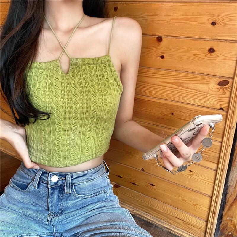 レッドショートホルターサマーニットトップス レディース 夏物 kumikum54666798113