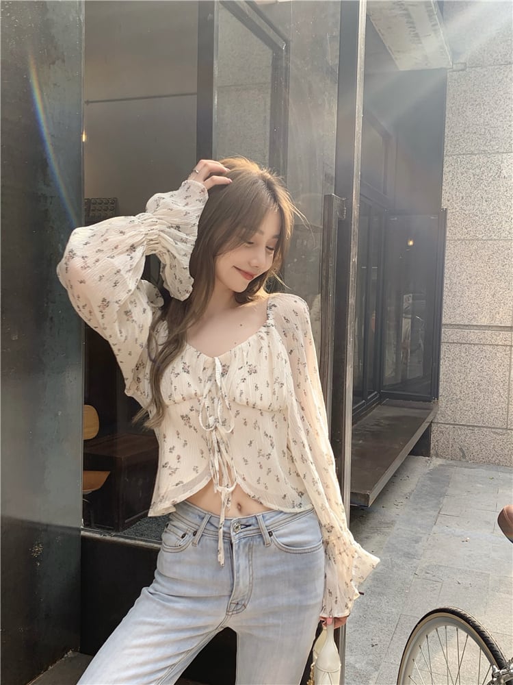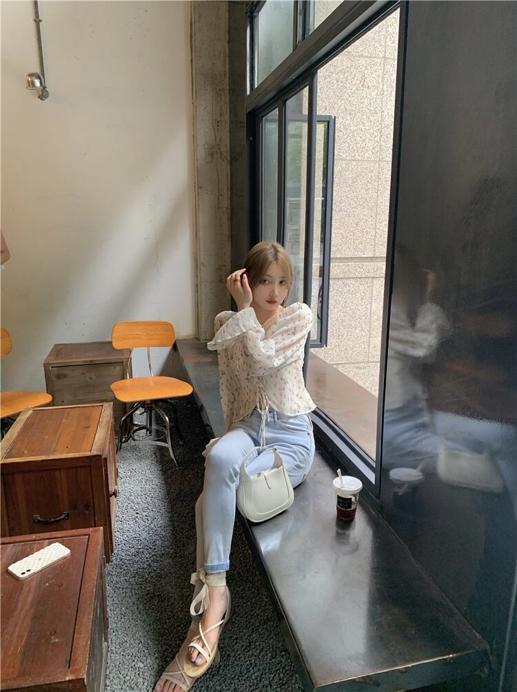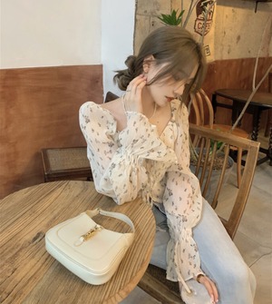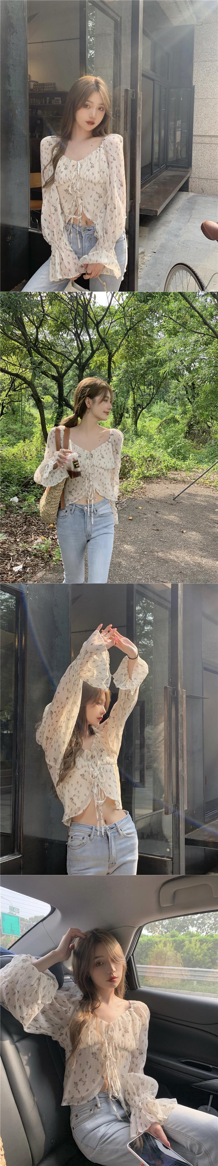 薄手シャツ シフォンサマーVネックスリムトップス ロング 夏物 kumikum82772588306