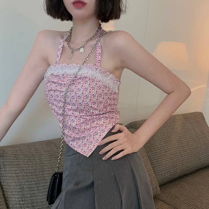 フローラルブラウス サマー薄手ノースリーブシャツ 夏物 花柄 kumikum32499817403