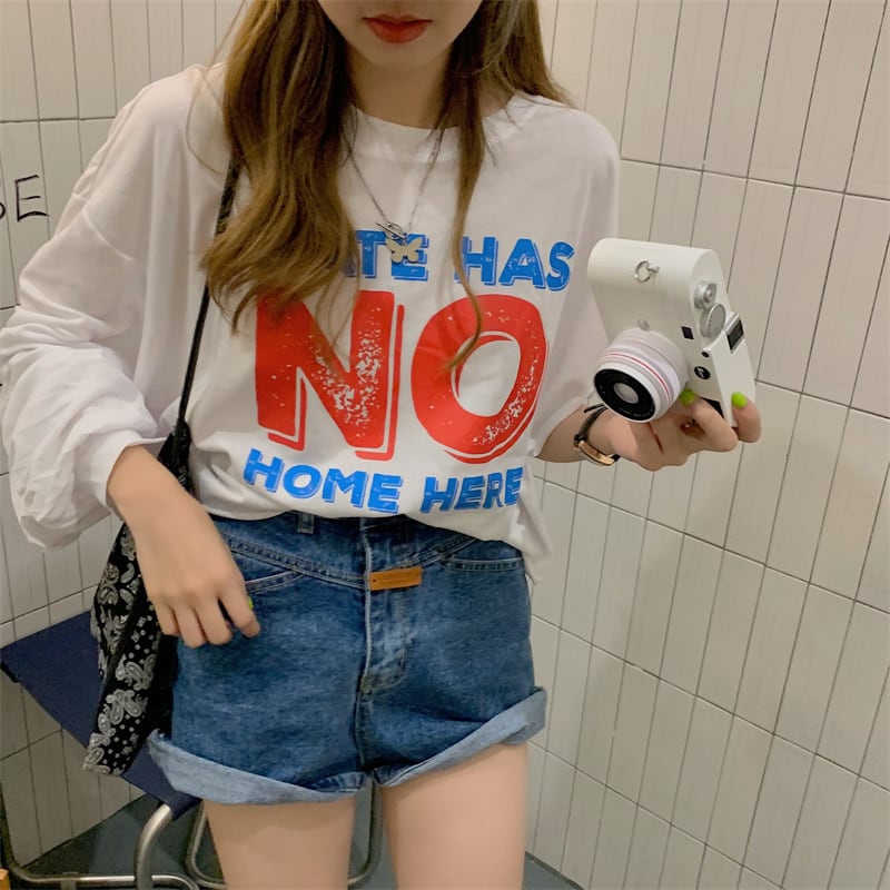 Tシャツ サマー薄手プリントルーズトップス ロング 夏物 kumikum45147600405