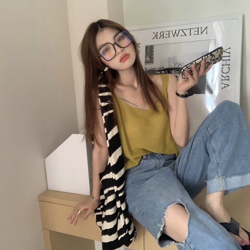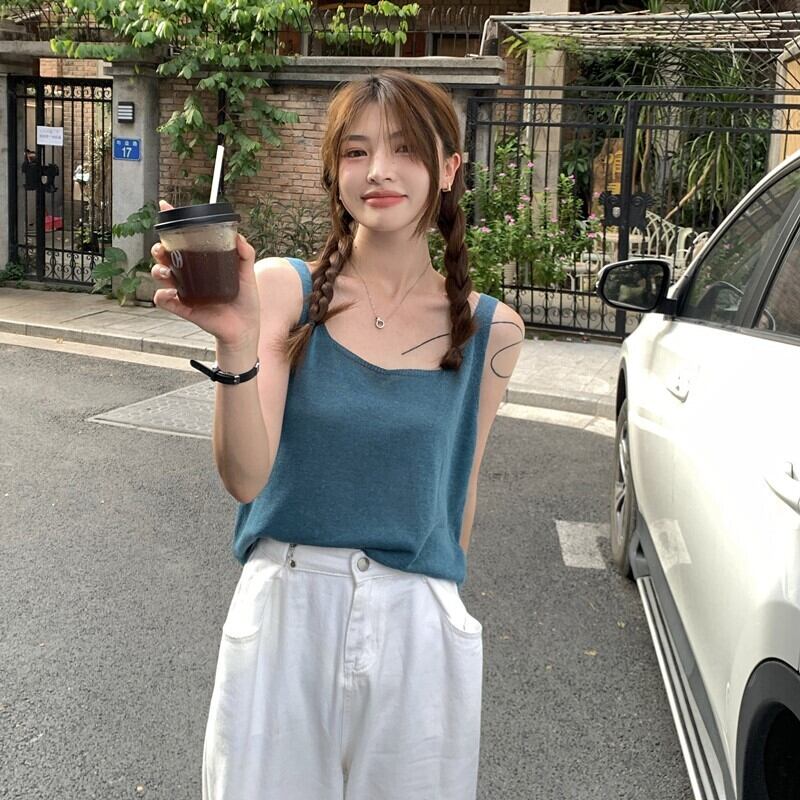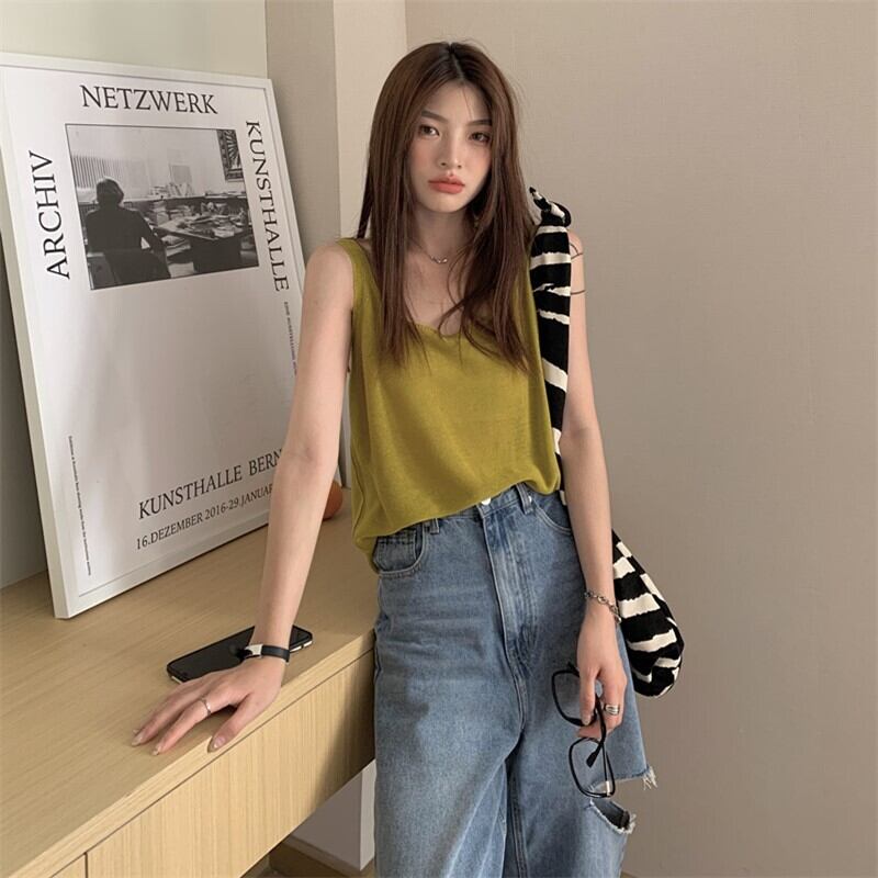 ソリッド カラー薄手シャツ サマーノースリーブニットレディース 夏物 ソリッドカラー kumikum49591508363
