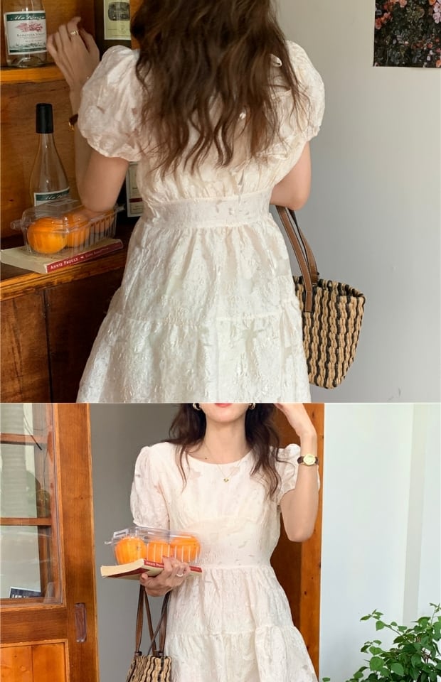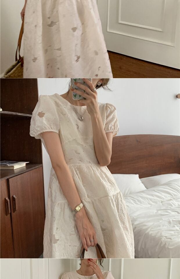 スタンダードスリーブスリムドレス サマーホワイトAラインスカート レトロ 夏物 kumikum51136016073
