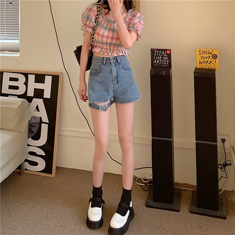 ハイウェストウェストスリムショーツ サマールーズワイドレッグパンツ 夏物 ブルマー ワイドパンツ kumikum57309685722