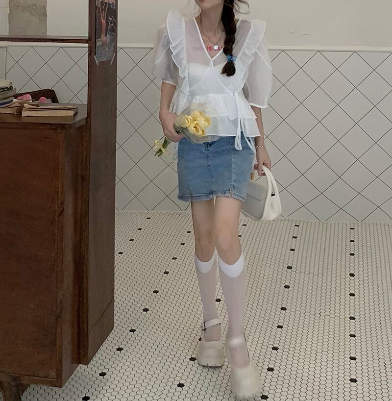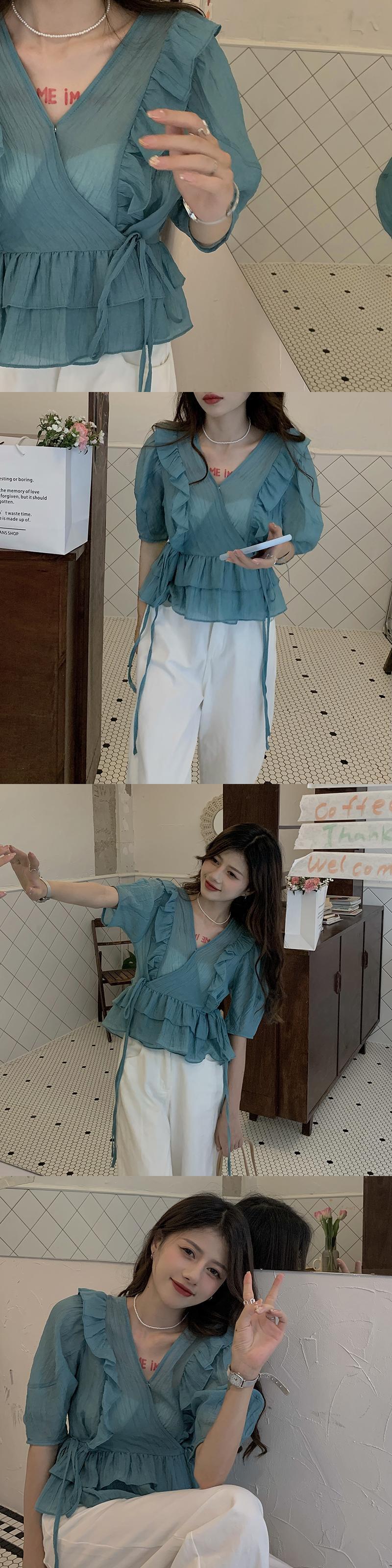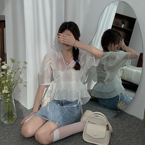 薄手プリーツシフォンシャツ サマーVネックレディース 夏物 kumikum21246677011