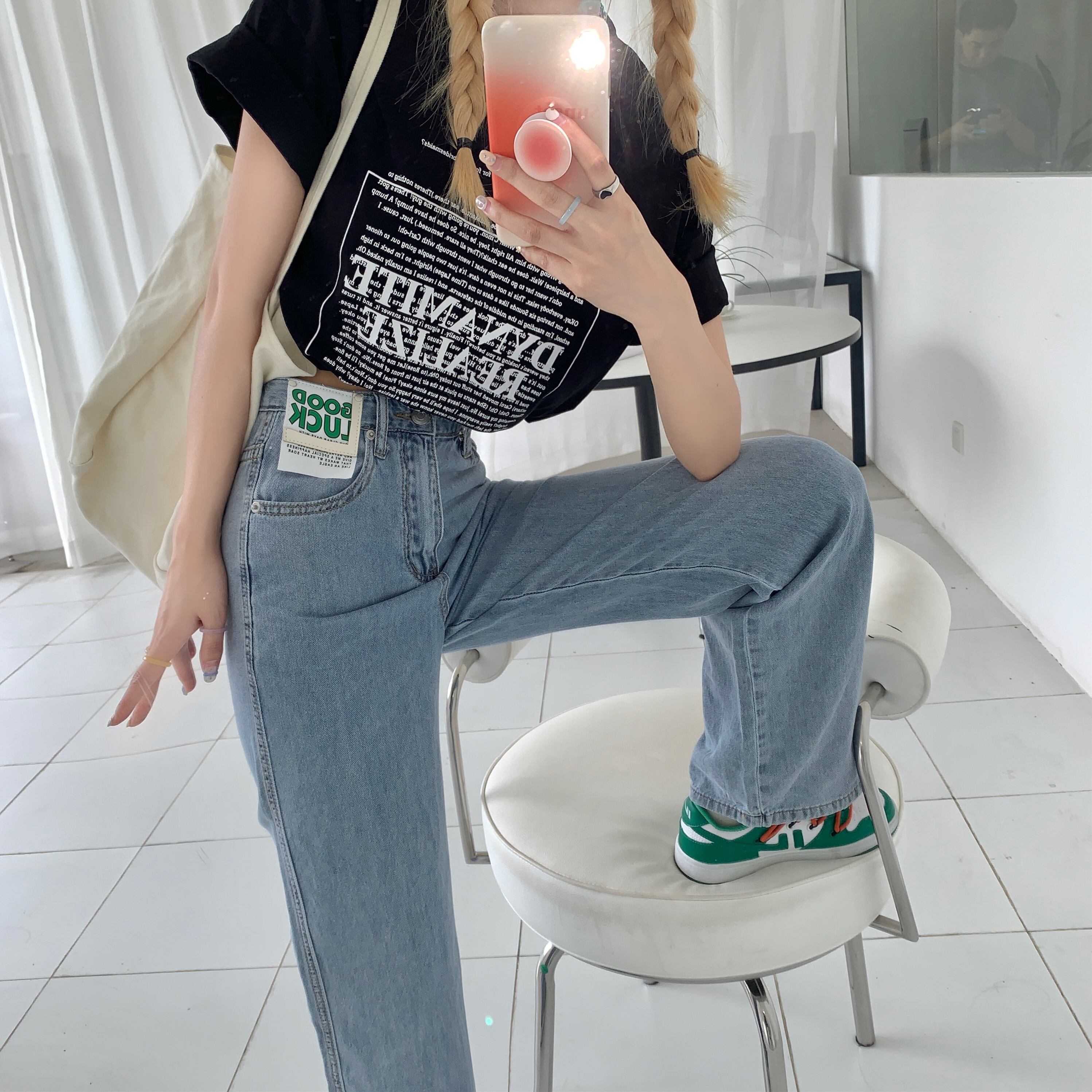 ハイウェストウェストスリムジーンズ サマースタンダードルーズパンツ レディース レトロ 夏物 kumikum16507671386