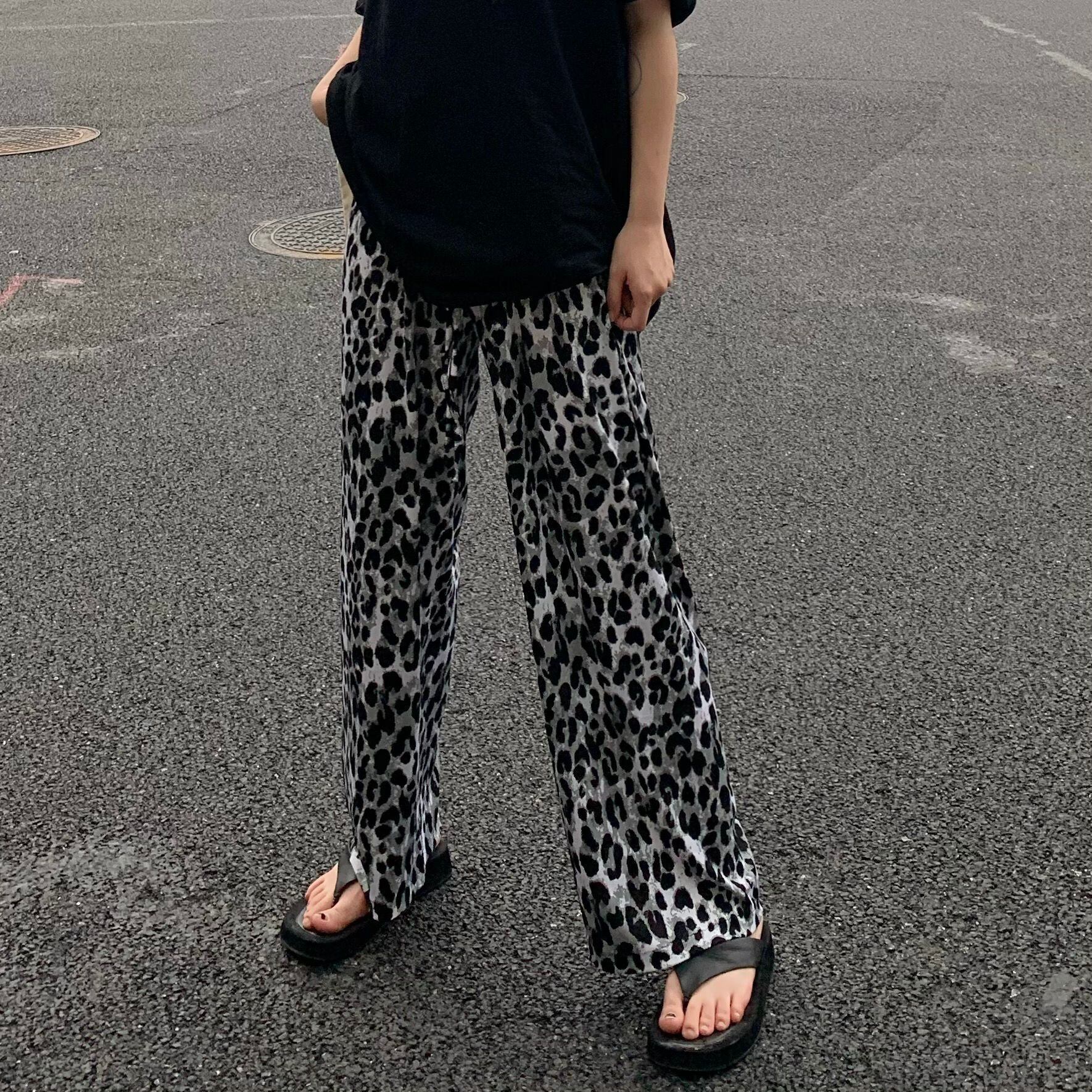 パンツ サマーハイウェストウェスト薄手レオパードプリント柄ルーズ 夏物 シルク kumikum84696498473