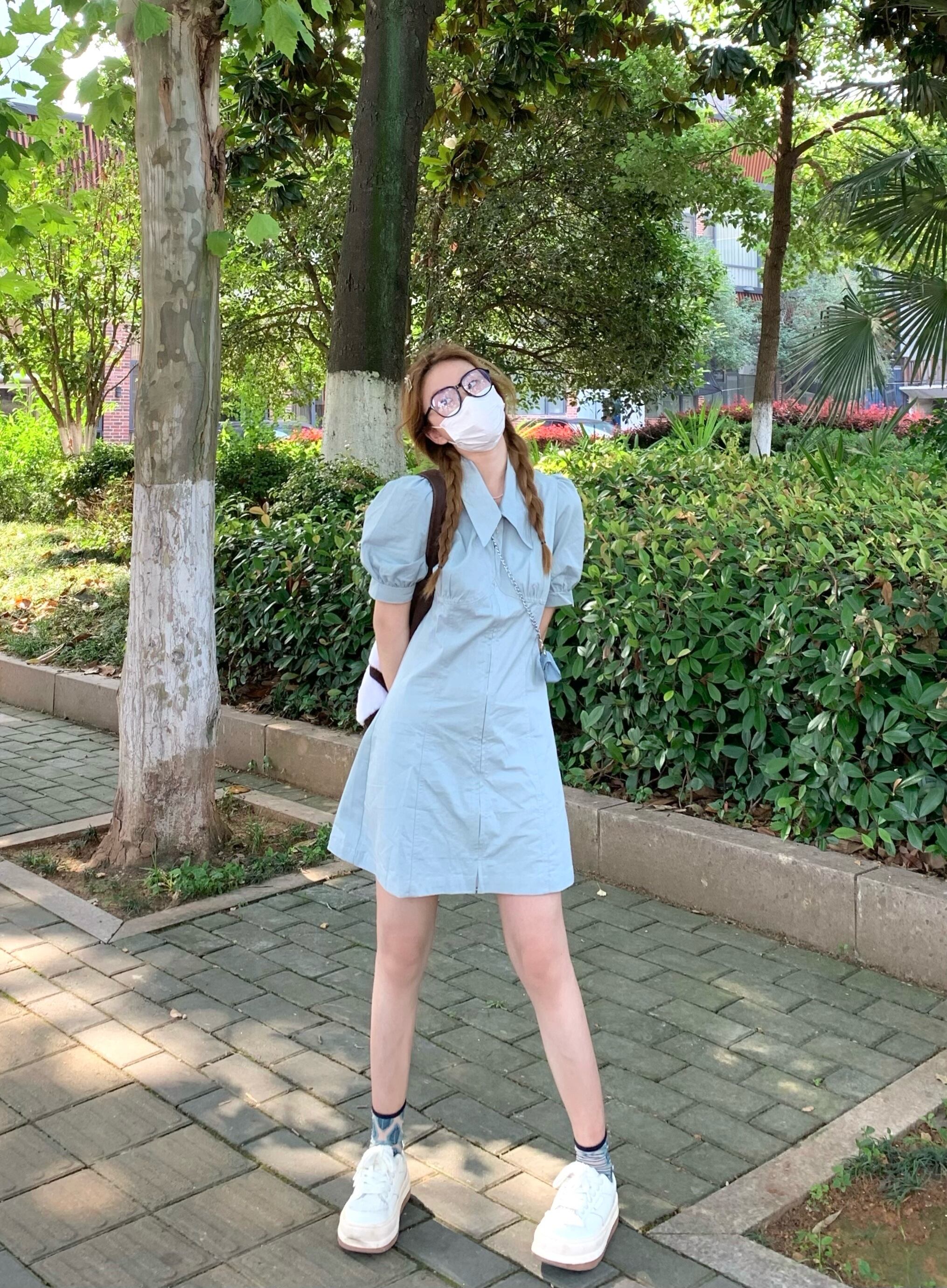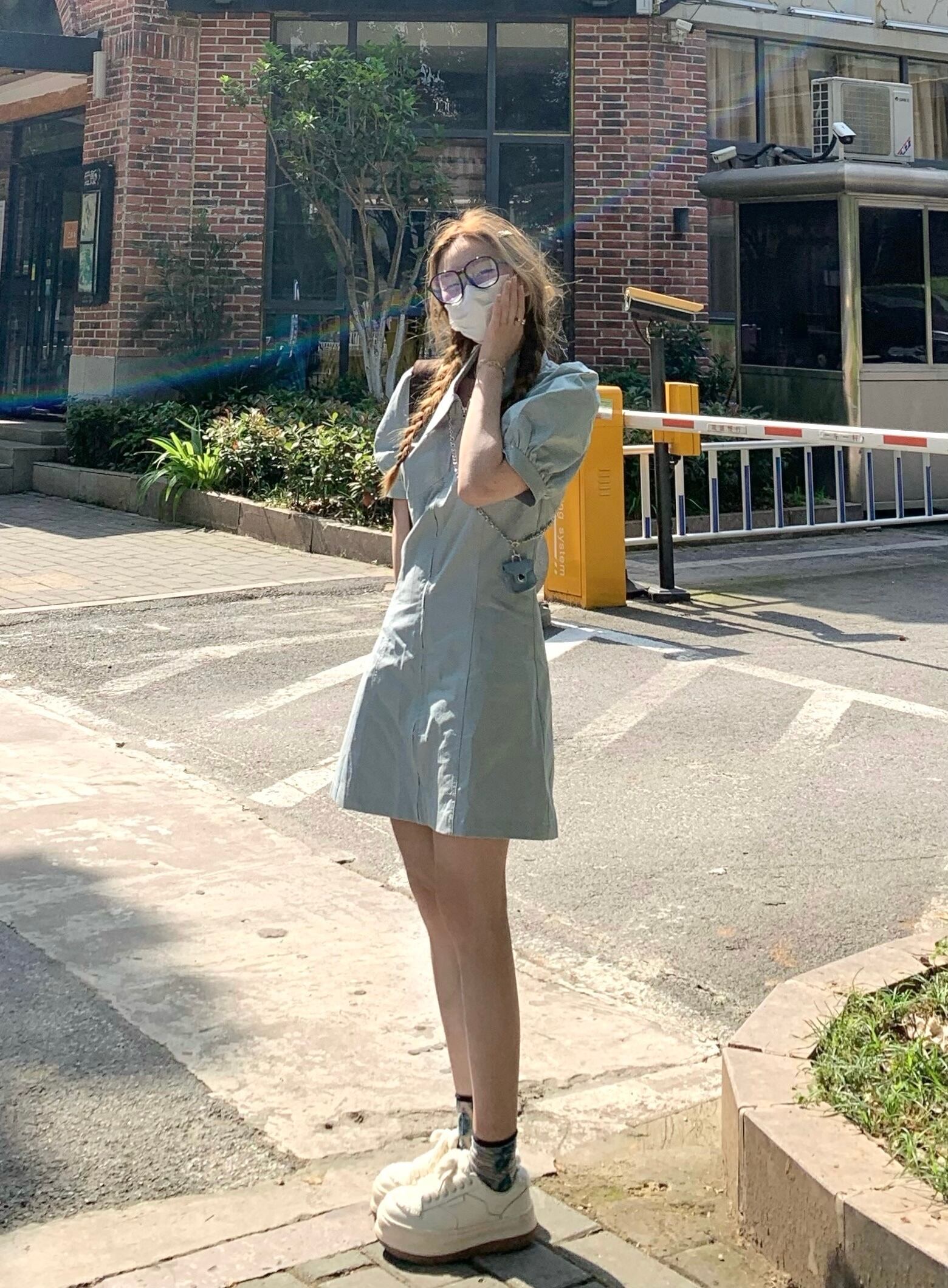 スリーブシャツ スカート ブルードレス サマーチェーン スリムAラインレディース 夏物 kumikum63554097709