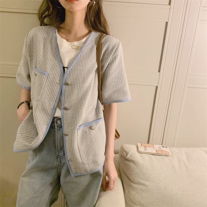 格子柄コート サマー薄手ルーズカーディガントップス 夏物 kumikum70025899334