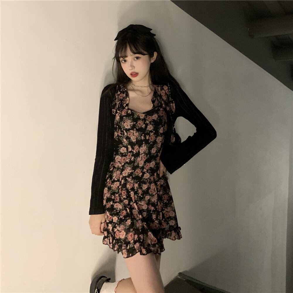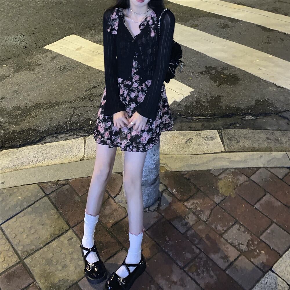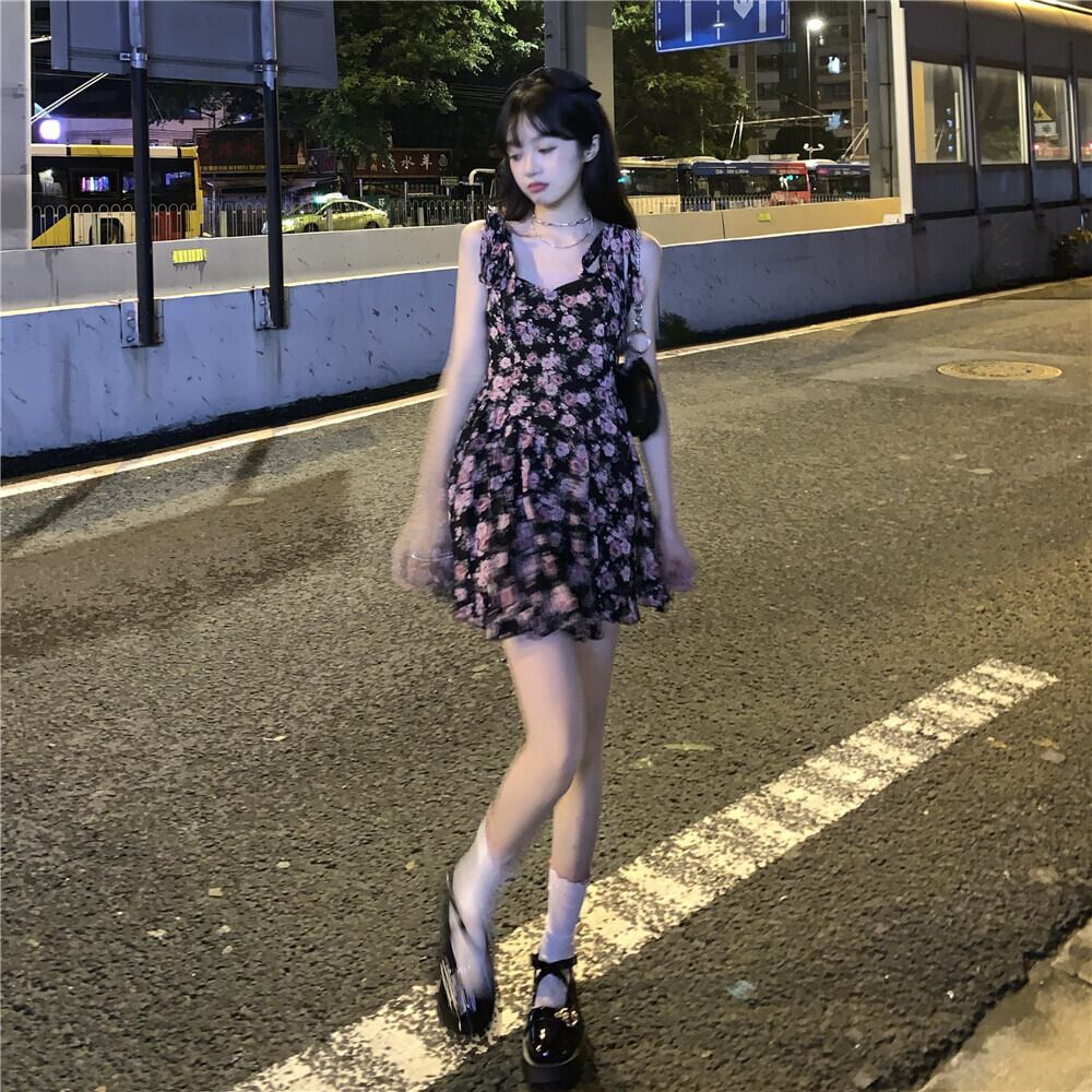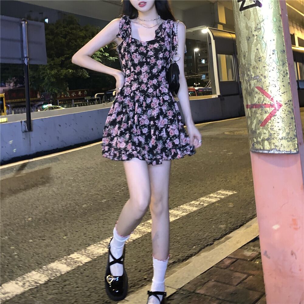 フローラルシフォンスカート サマースリムノースリーブドレス レディース 大人ガーリー スウィート キュート カジュアル 夏物 花柄 kumikum25790748585