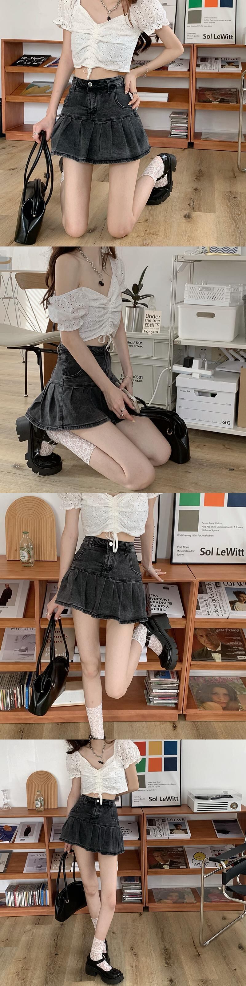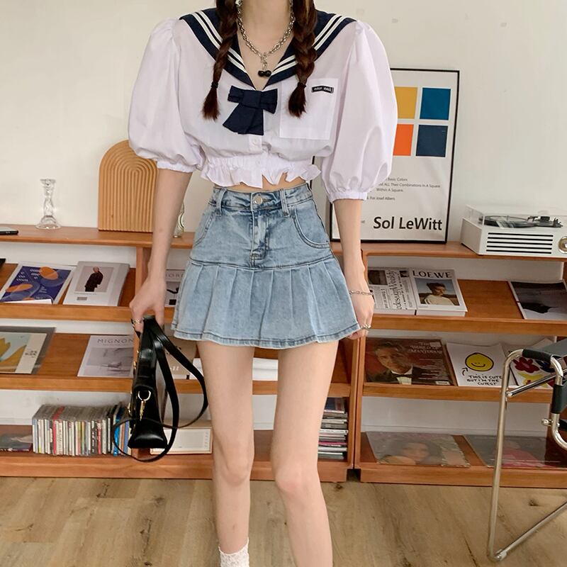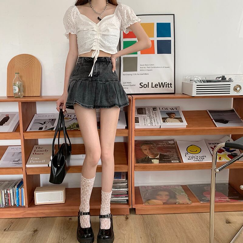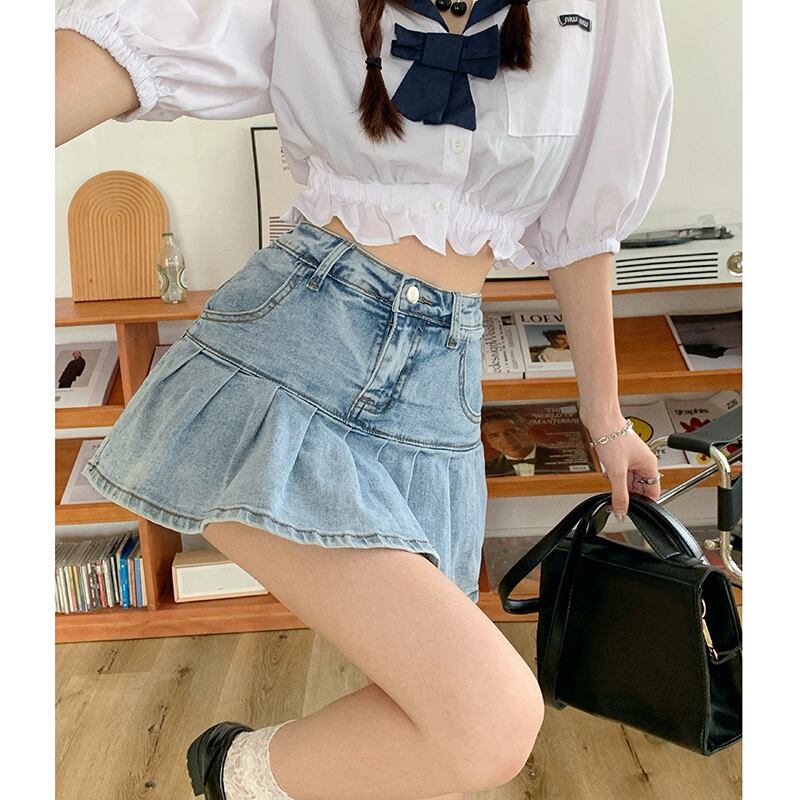 Aラインハイウェストウェストスカート サマースタンダードプリーツ レトロ 夏物 kumikum14860789685