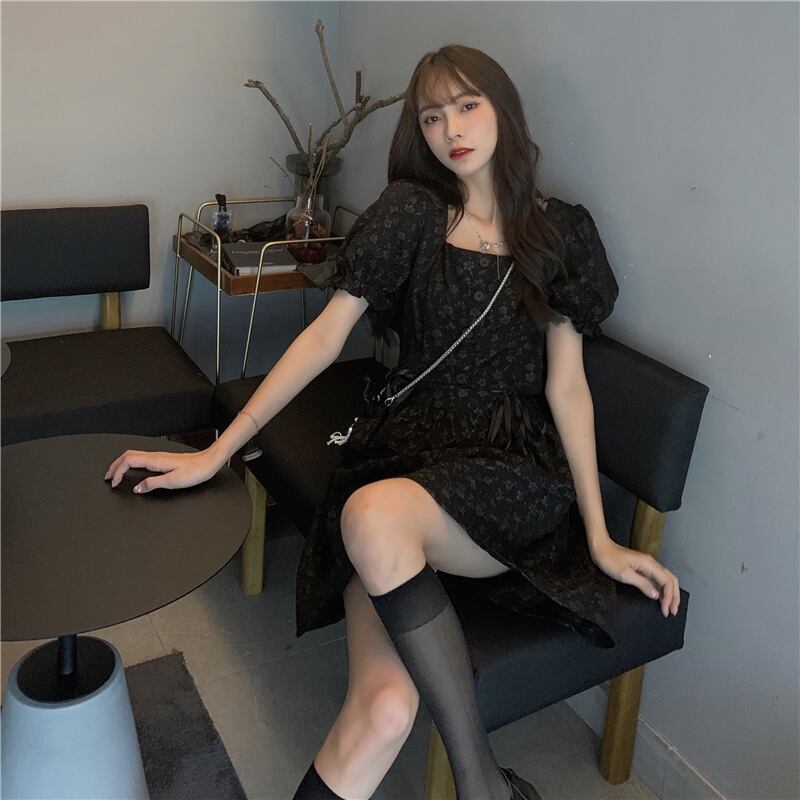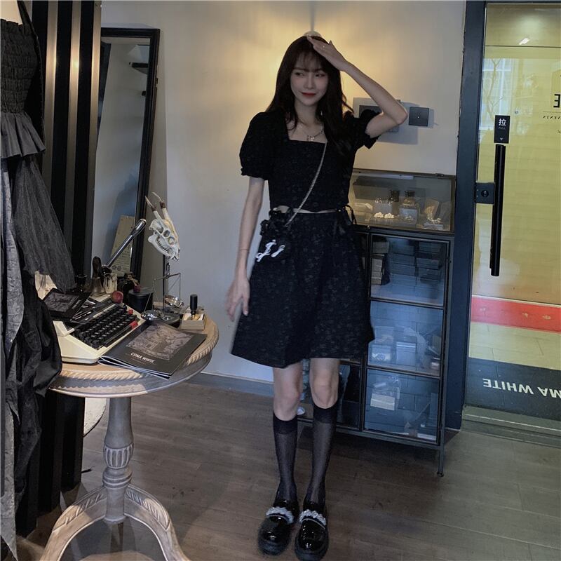 サマースタイルカラードレス スタンダードスリーブ薄手ショートスカート レトロ レース 夏物 スクウェア kumikum83542325667