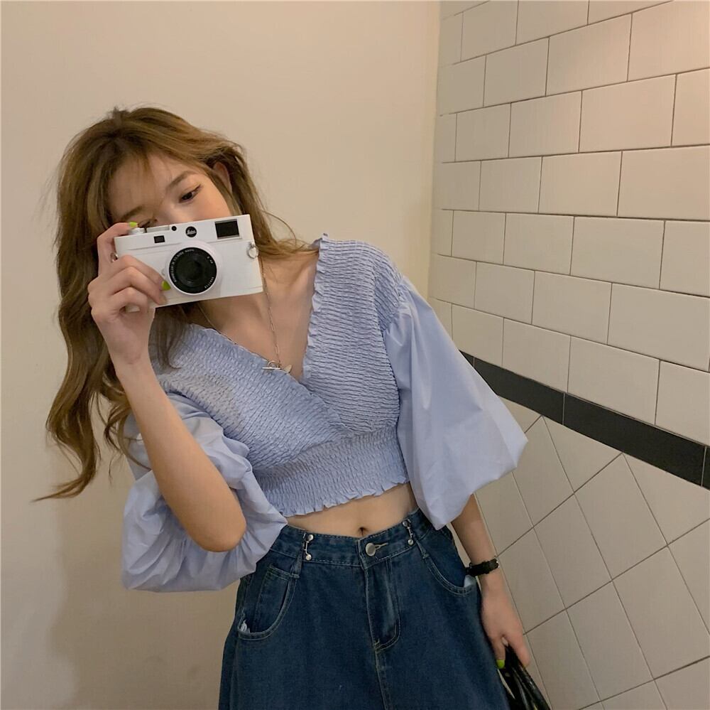 Vネックショート薄手スリーブトップス サマースリムシャツ レディース 夏物 kumikum817960669