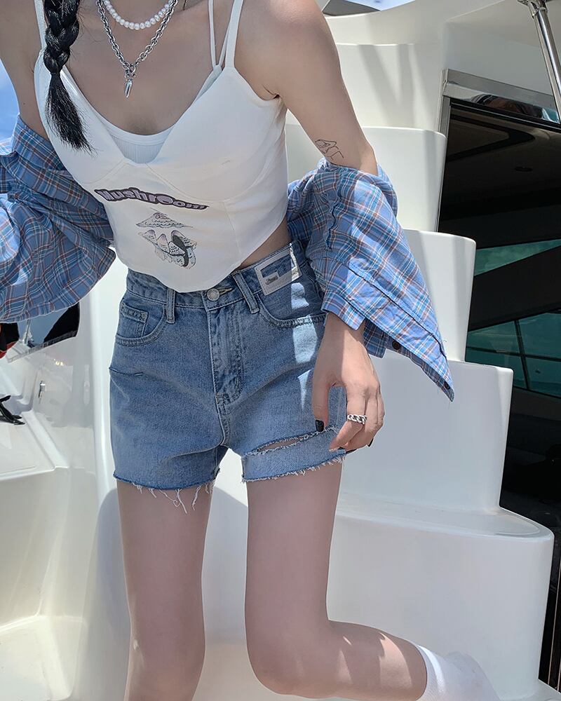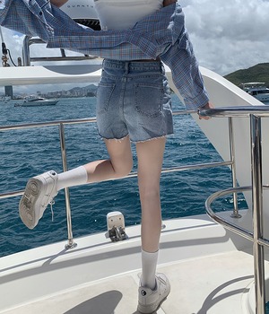 ショーツ サマーブルーハイウェストウェスト薄手パンツ 夏物 ブルマー kumikum42809509728
