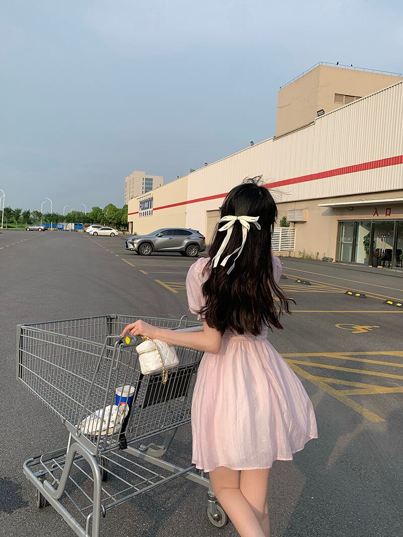シフォンスリーブAラインスカート サマーカラーウェスト薄手ドレス レディース ピンク 夏物 スクウェア kumikum7676166403