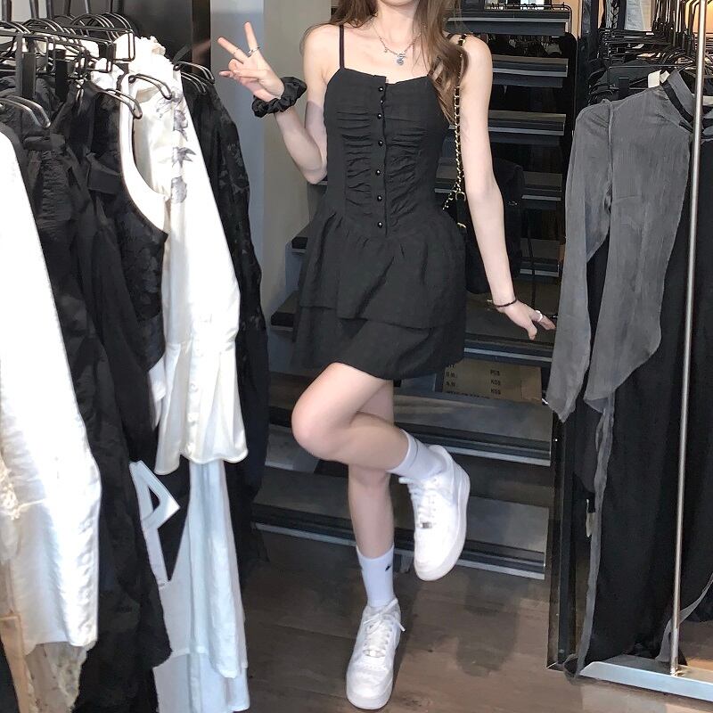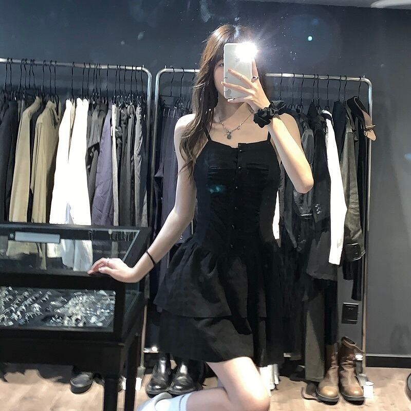 ドレス サマースタンダードウェストブラックAラインスカート レトロ 夏物 kumikum72636193701
