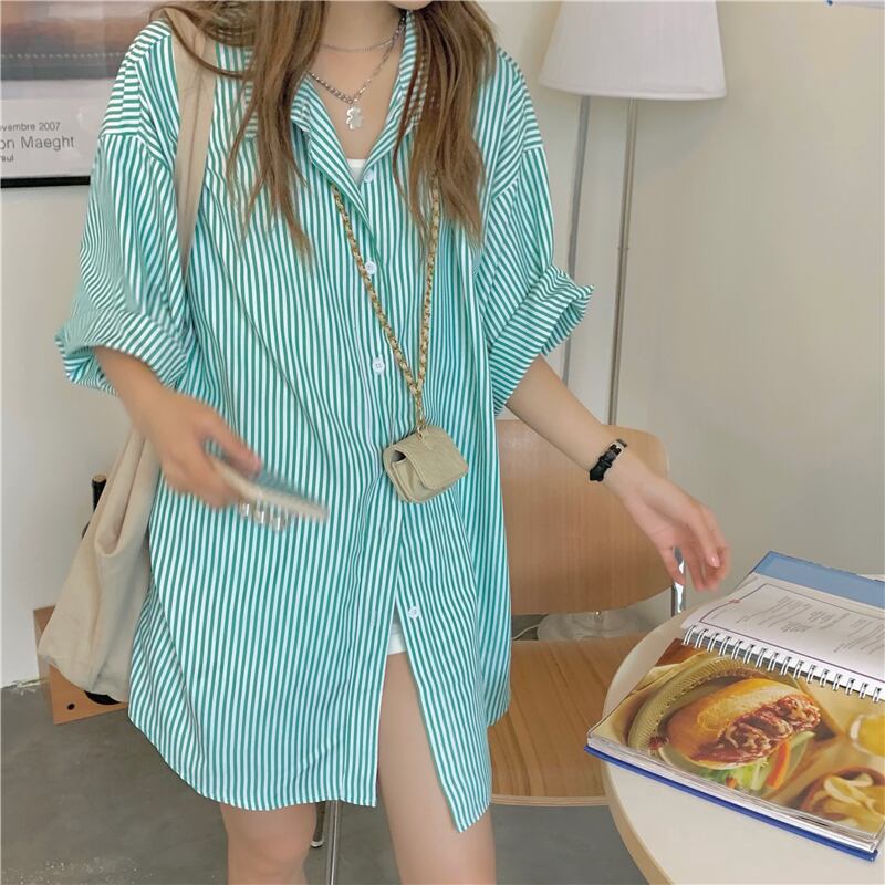 スタンダードストライプシャツ サマールーズ薄手コート ジャケット レディース レトロ 夏物 kumikum71244143874