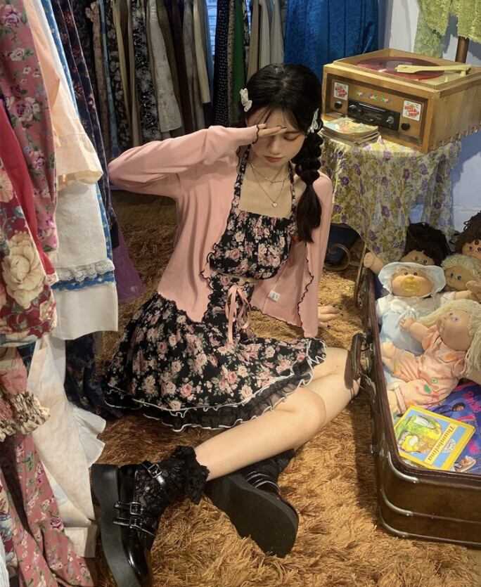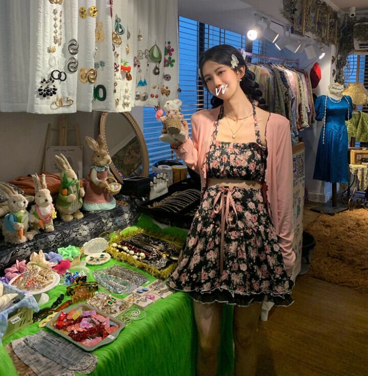 フローラルシフォンスカート カーディガントップス 花柄 ピュア kumikum7636589885