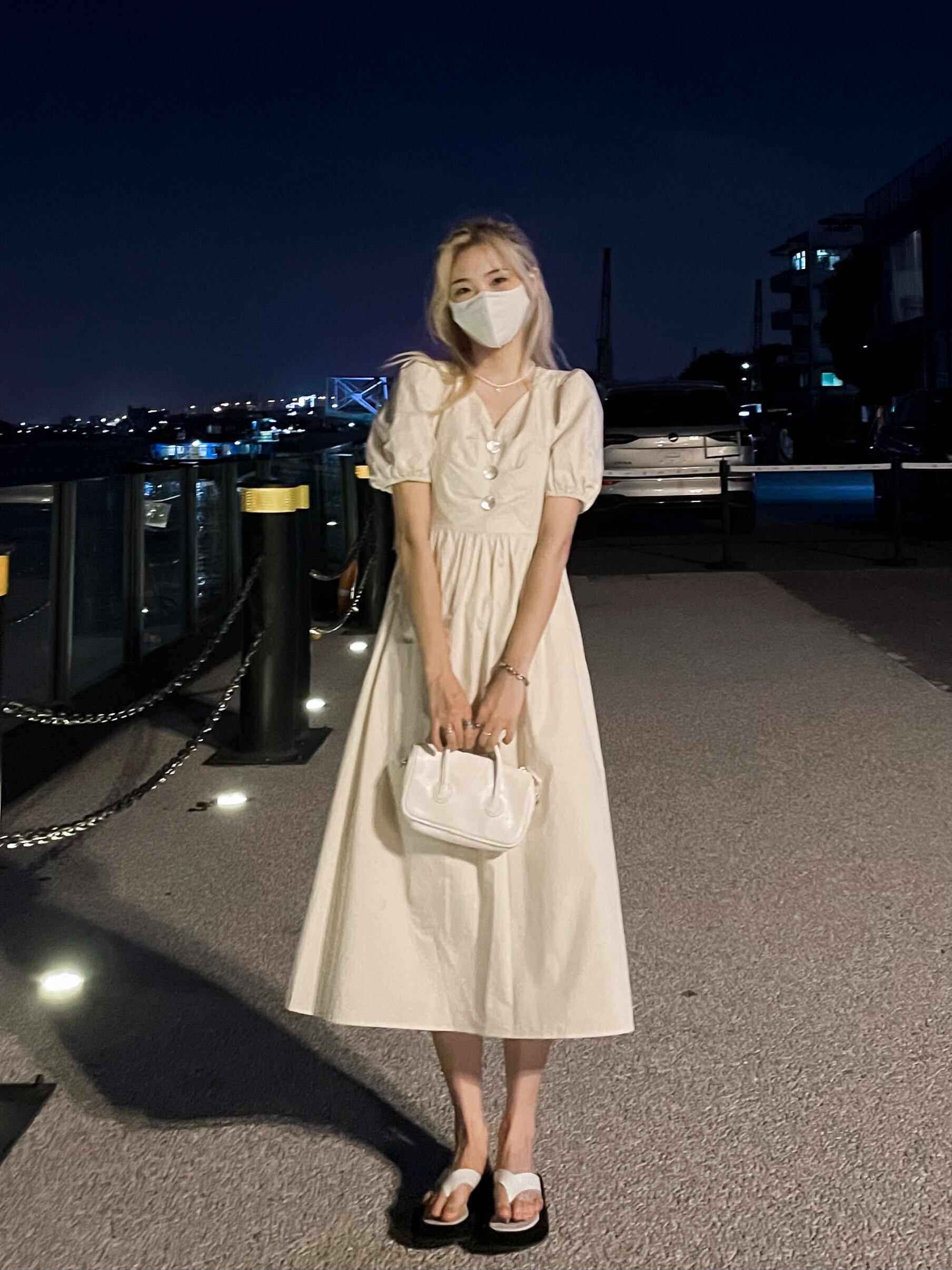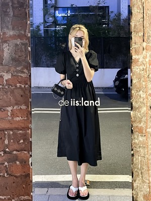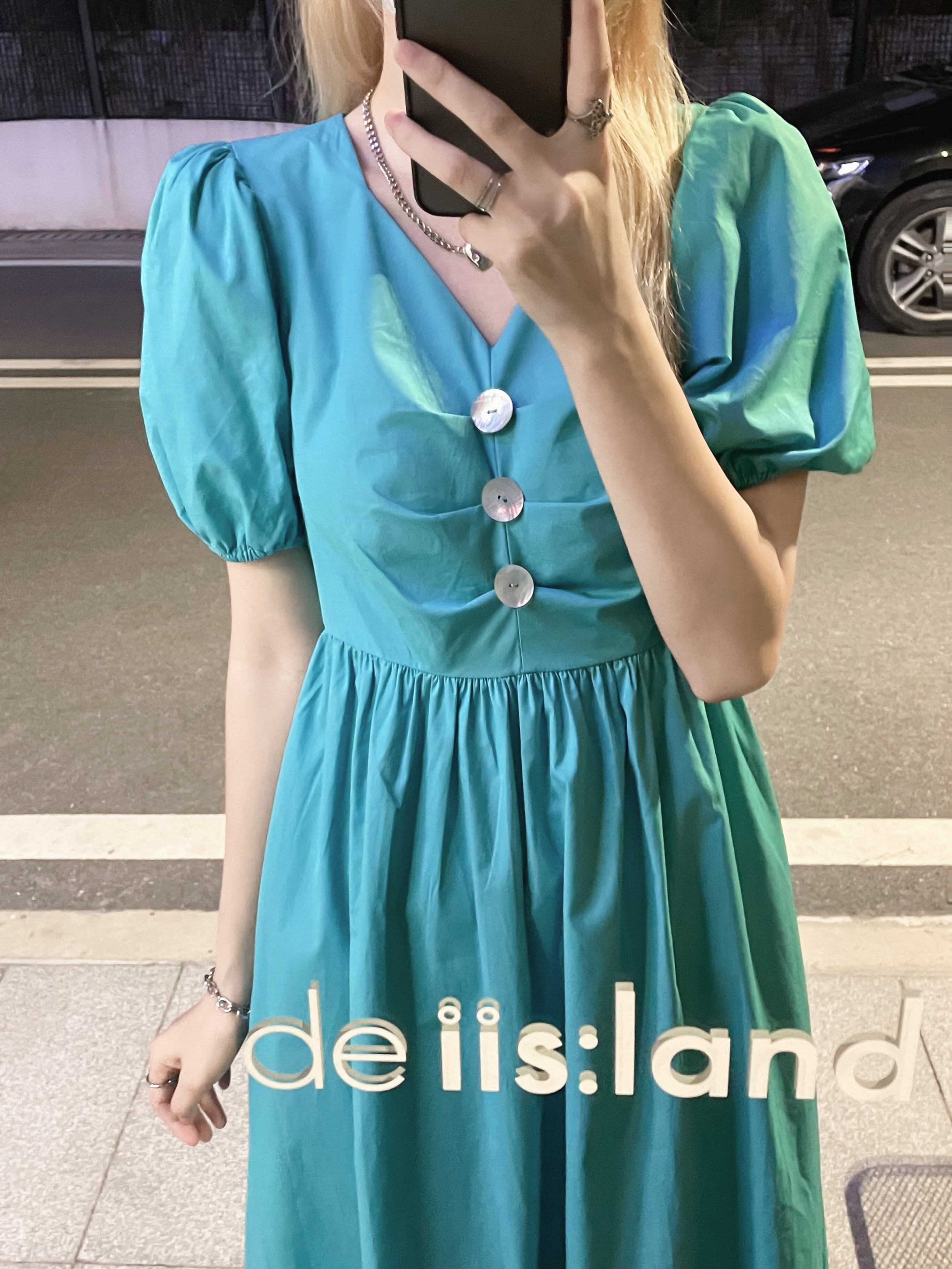 サマースカート Vネックスリーブミディドレス 夏物 kumikum90753268361