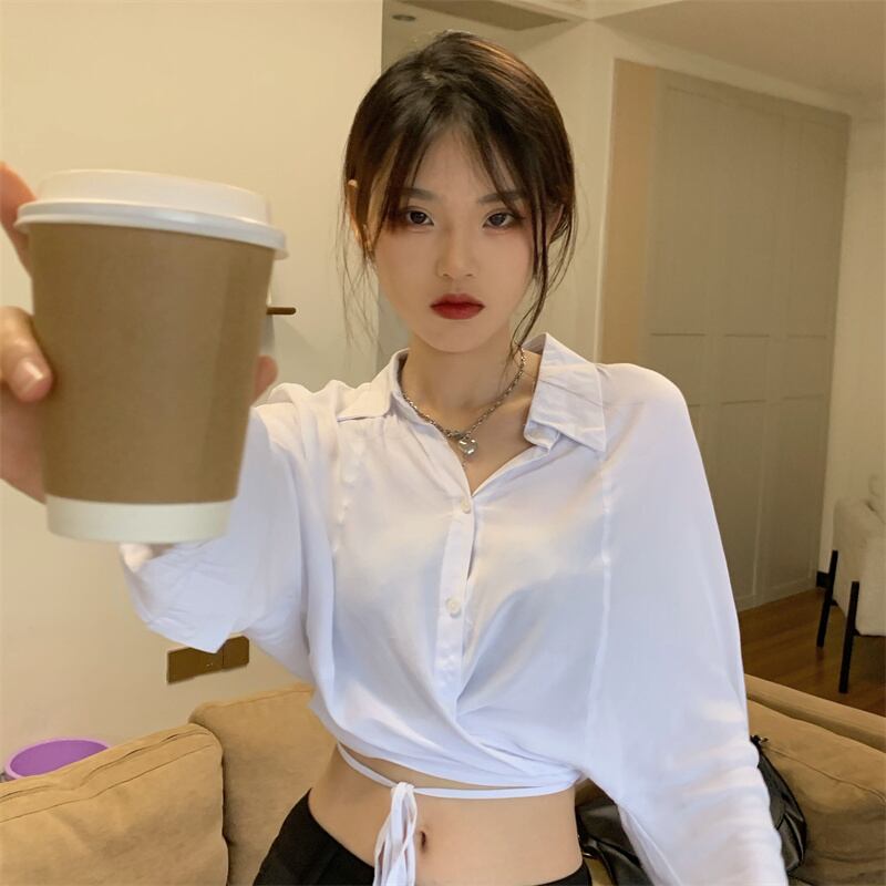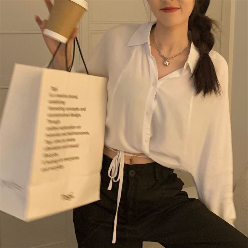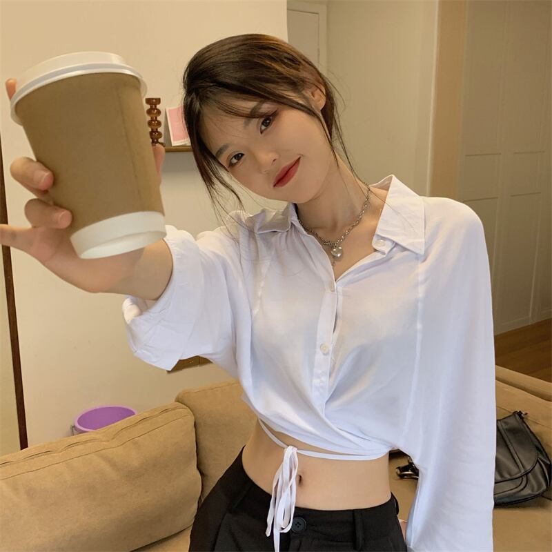 ホワイトシャツ サマー薄手トップス ロング 大人ガーリー スウィート キュート カジュアル 夏物 kumikum20818275811