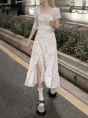 フローラルドレス サマースリーブスカート 夏物 花柄 スクウェア kumikum66917284882