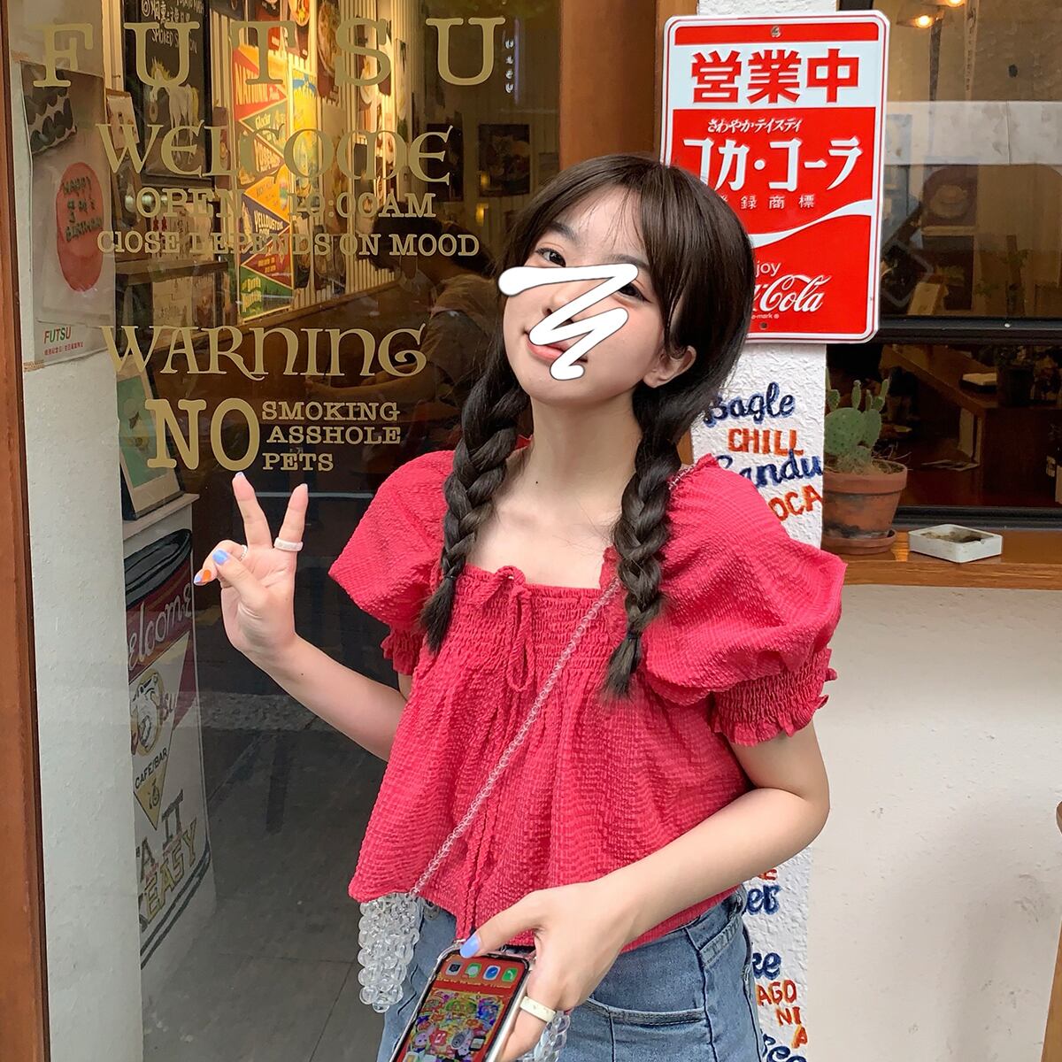 ショートスリーブシャツ レディースサマーカラー 大人ガーリー スウィート キュート カジュアル 夏物 スクウェア kumikum60965373320