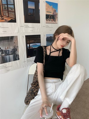 ショートTシャツ サマーブラッククロップトップ トップス 夏物 kumikum39931430991