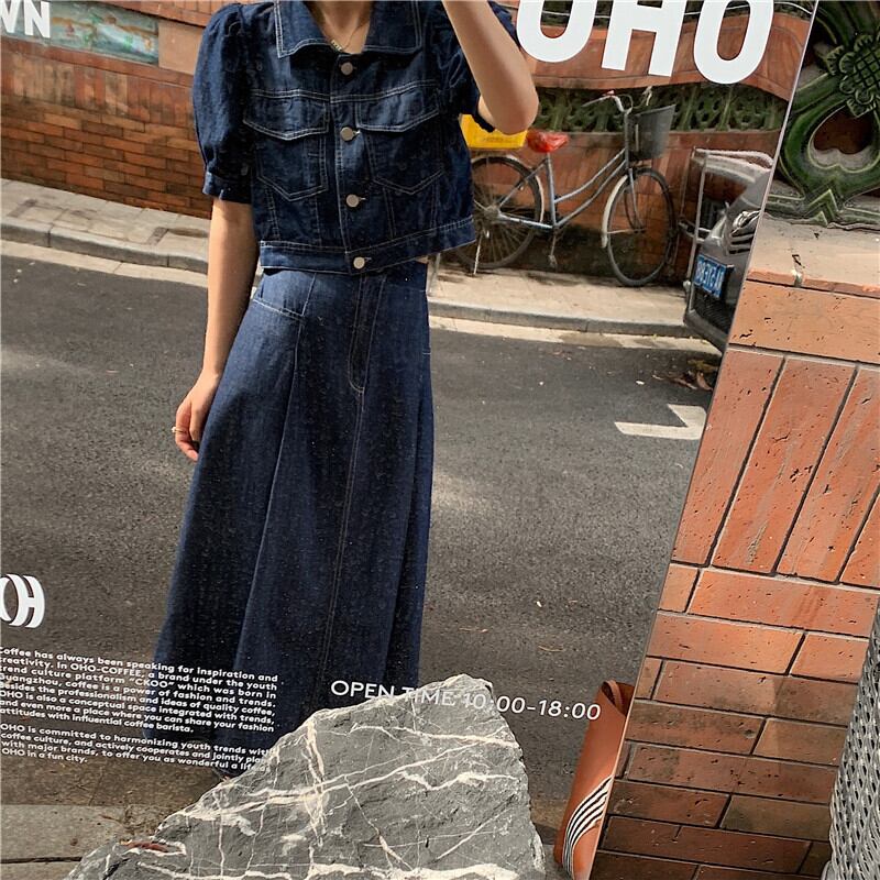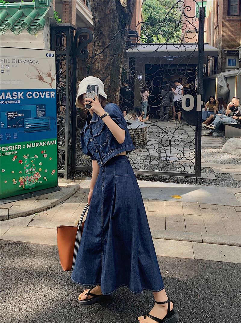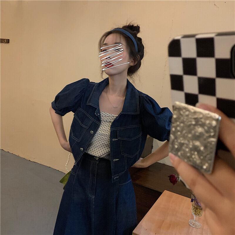 スタンダードサマーショートジャケット ハイウェストウェストスカート レトロ 夏物 kumikum13016760780