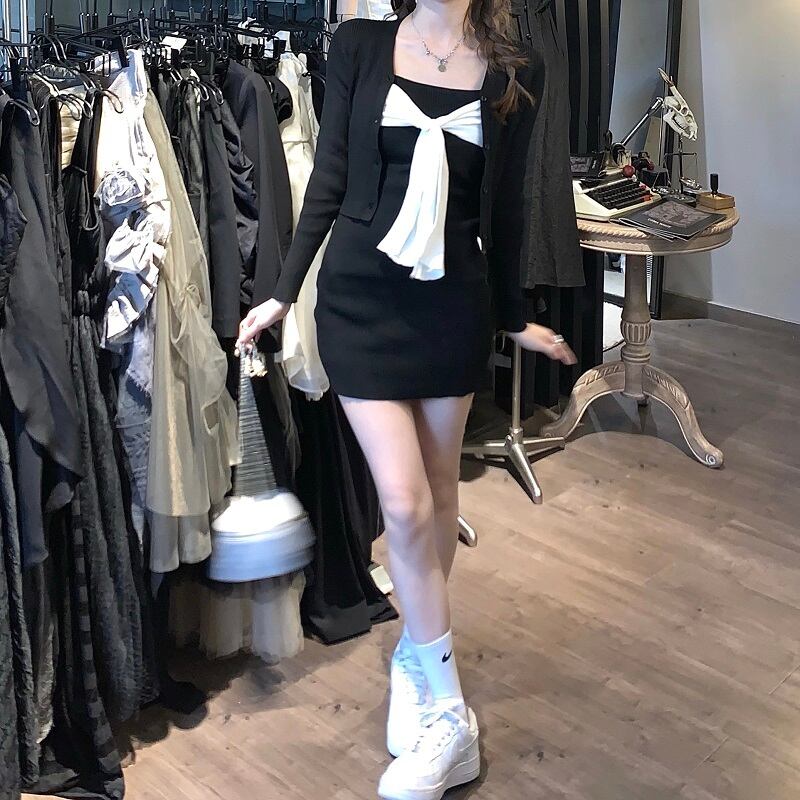 スリムスカート サマーブラックニットカーディガンレディース 大人ガーリー スウィート キュート カジュアル 夏物 kumikum7836879372