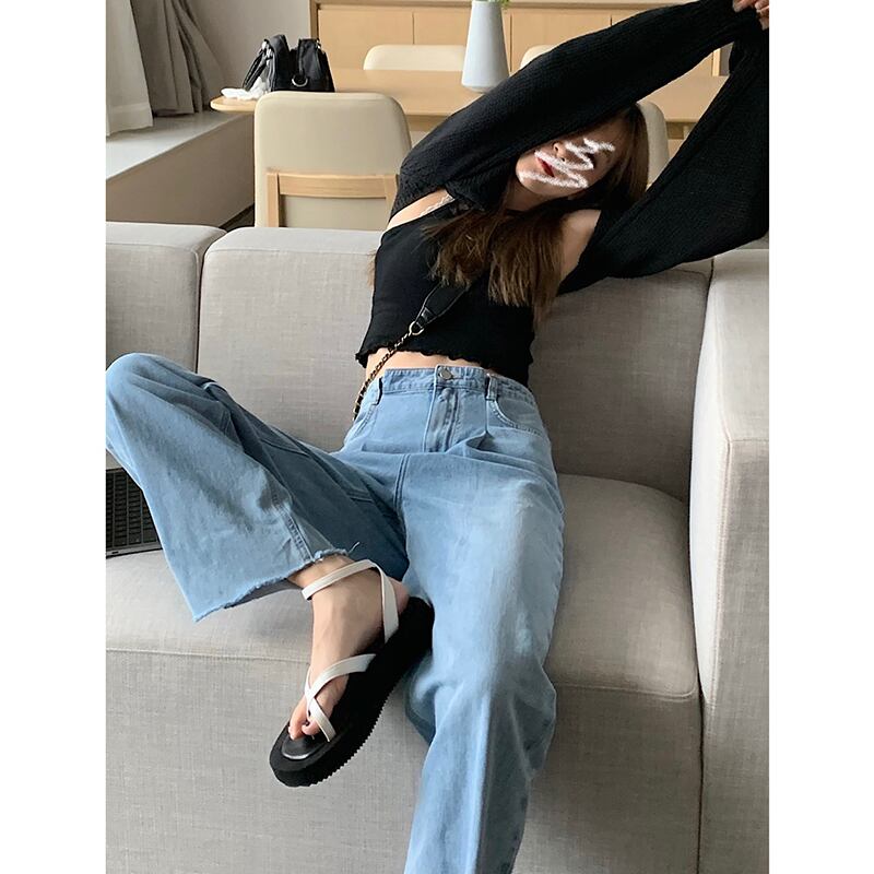 ジーンズ サマー薄手パンツ スタンダードハイウェストウェストルーズワイドレッグ レトロ 夏物 ワイドパンツ kumikum34929750511