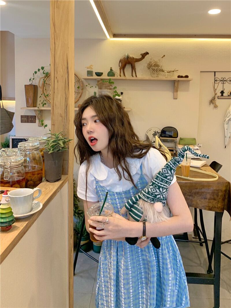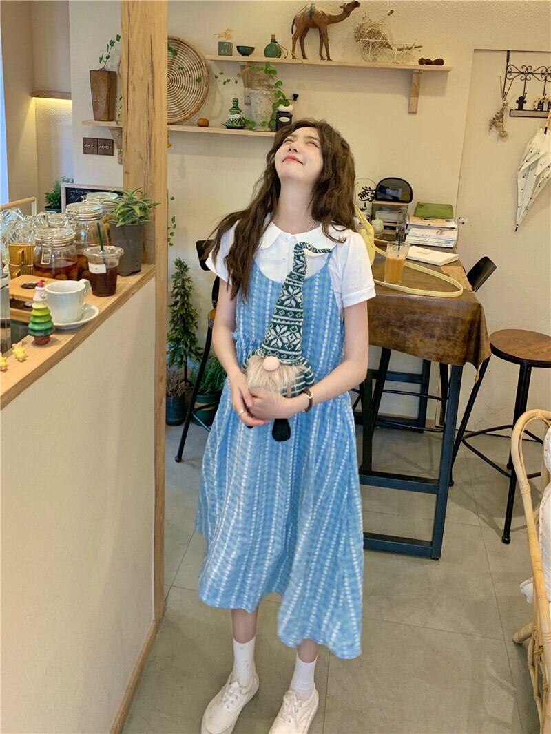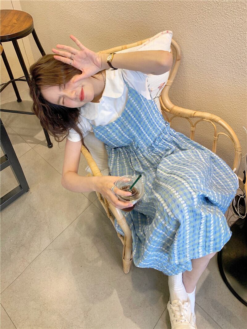 ブルーフローラルスカート サマーカラーホワイトシャツ 夏物 花柄 kumikum36378427376