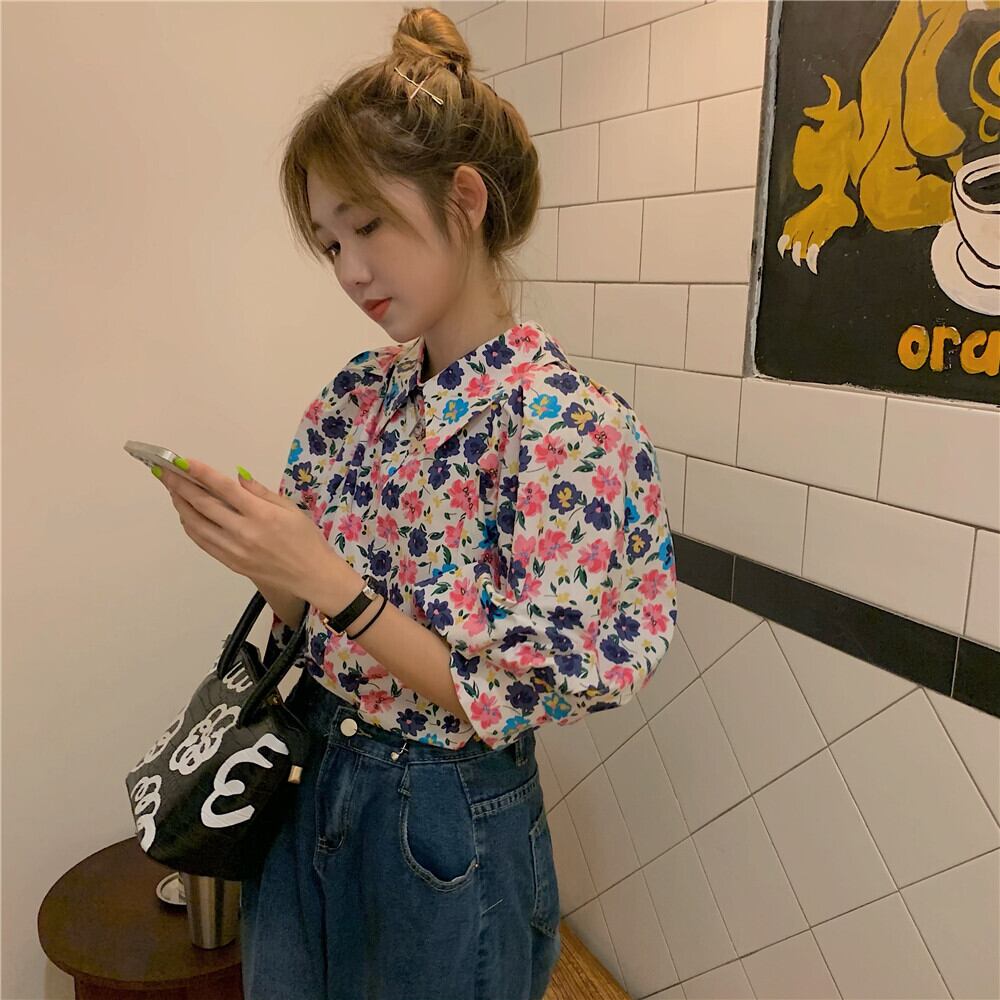 フローラルシャツ サマースタンダードルーズ薄手スリーブ レトロ 夏物 花柄 kumikum53152293328