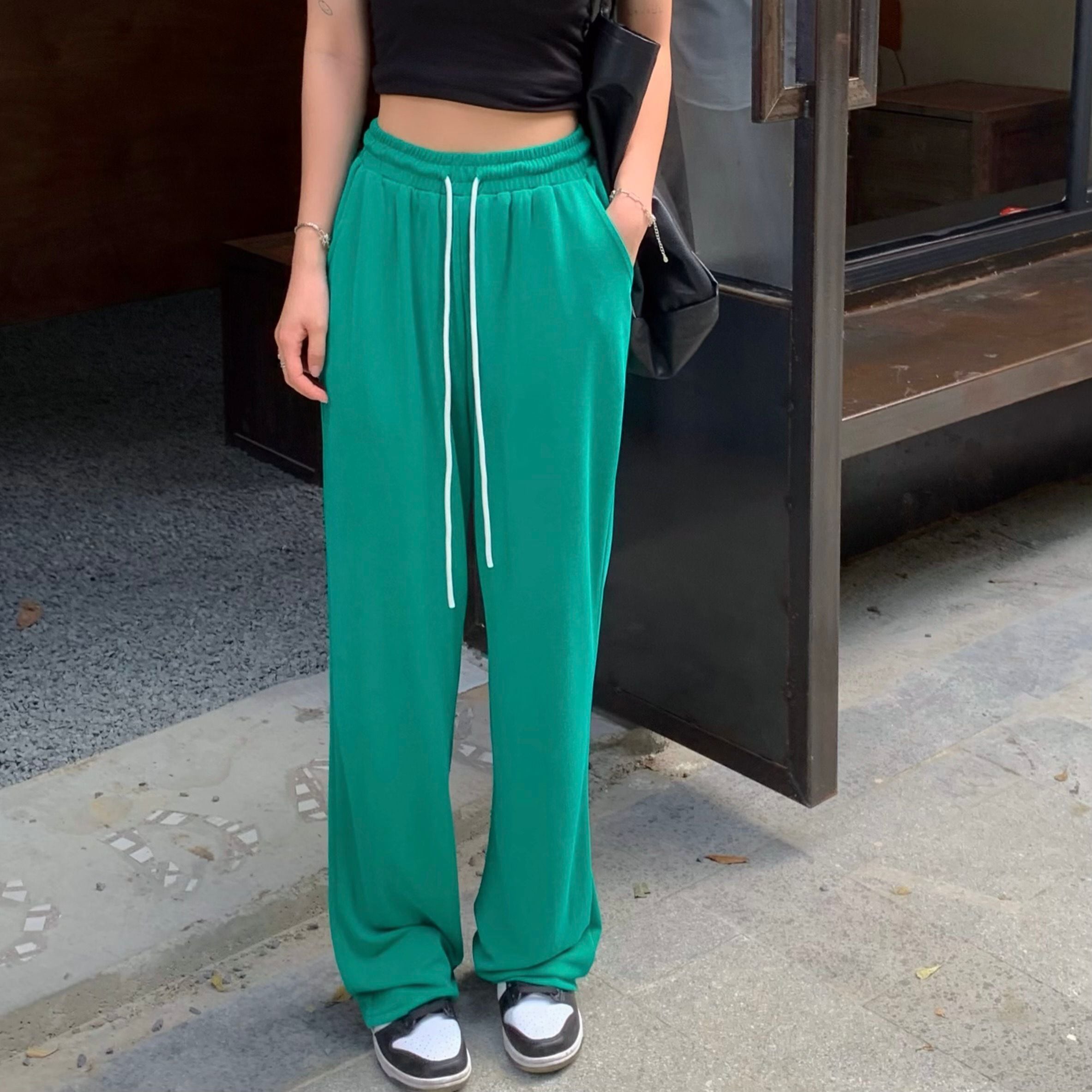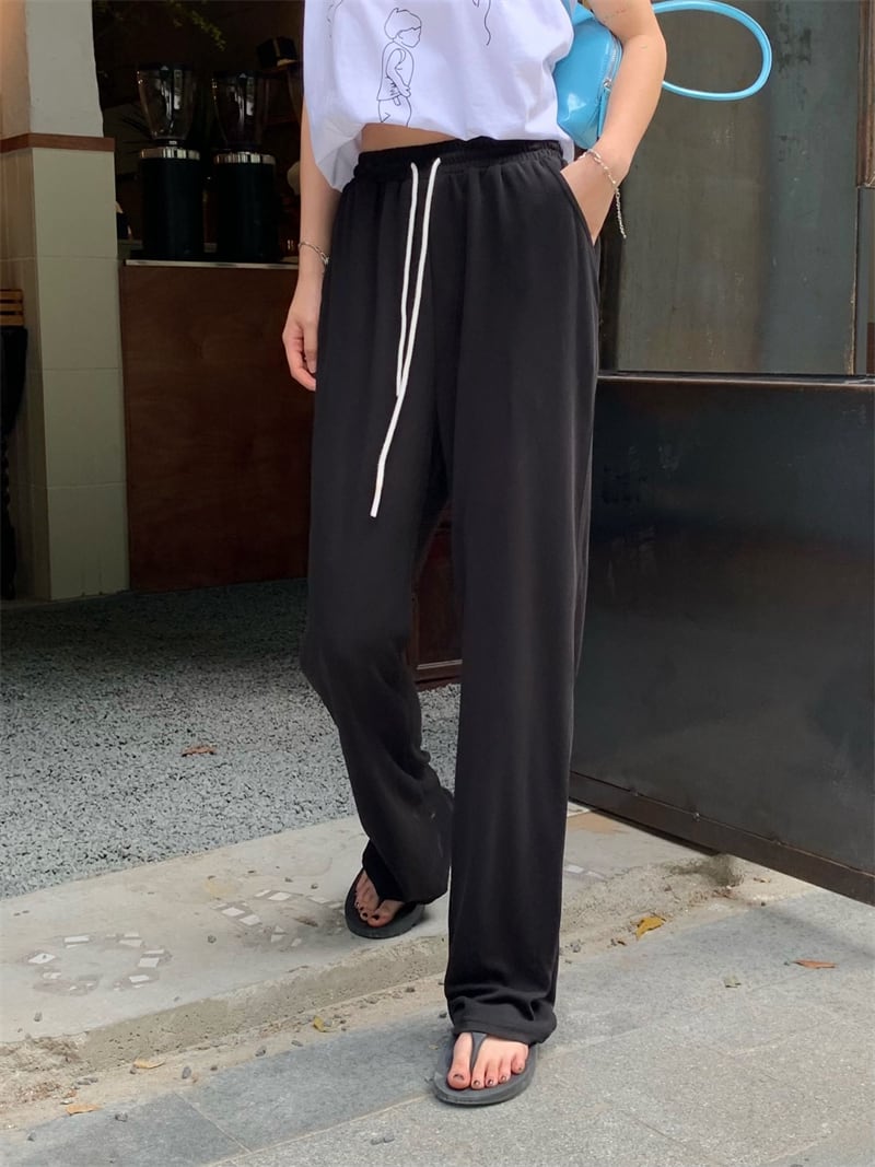 ワイドレッグパンツ レディースサマー薄手ハイウェストウェストブラックカジュアルルーズ 夏物 ワイドパンツ kumikum70967318284