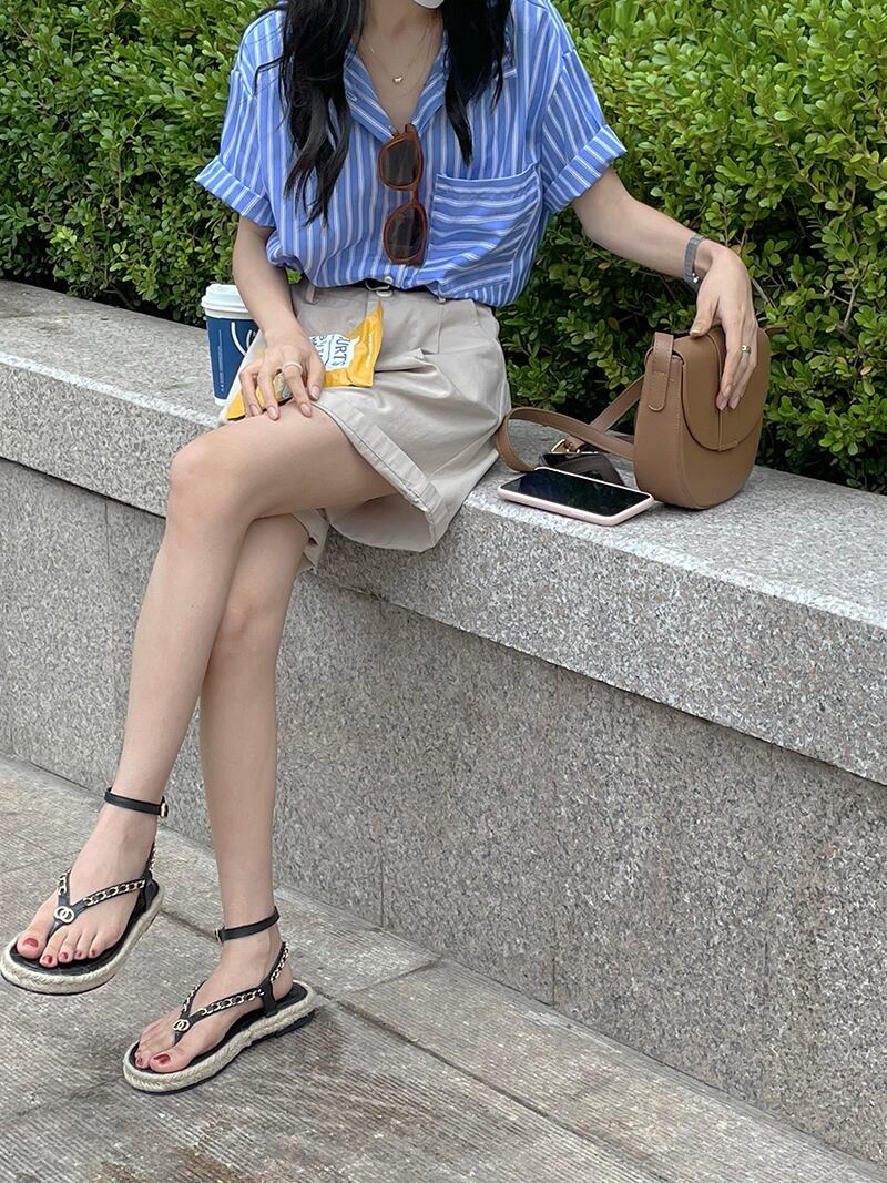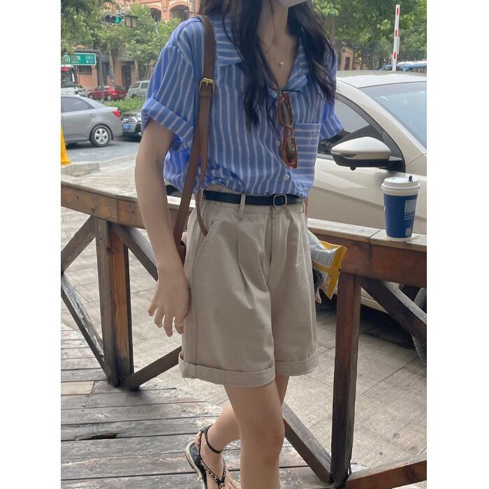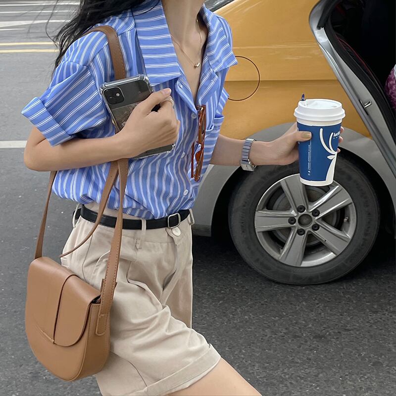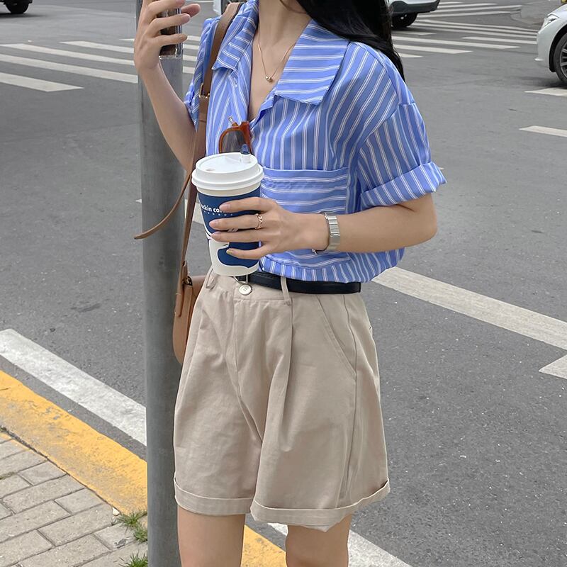 ベーシックストライプシャツ ルーズカジュアルサマーブラウス レディース 夏物 kumikum50038209775