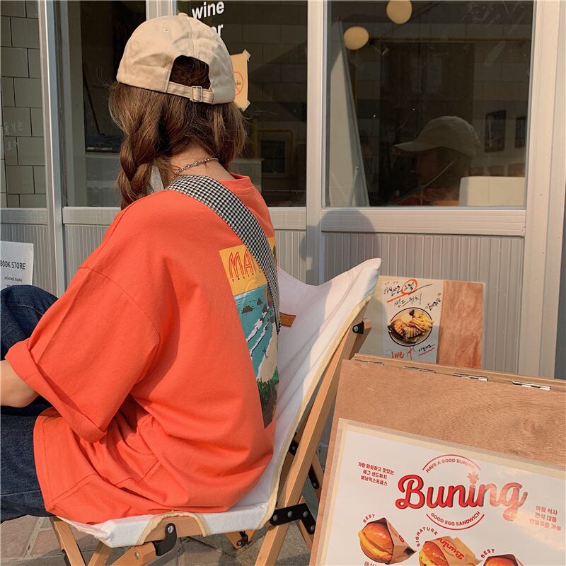バックプリント柄Tシャツ レディースサマースタイルルーズトップス かわいい 夏物 kumikum88947370404