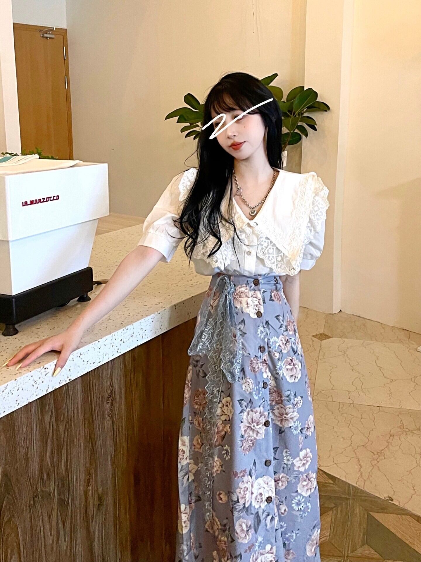 色:レースシャツトップ,パターンスカートS,パターンスカートM