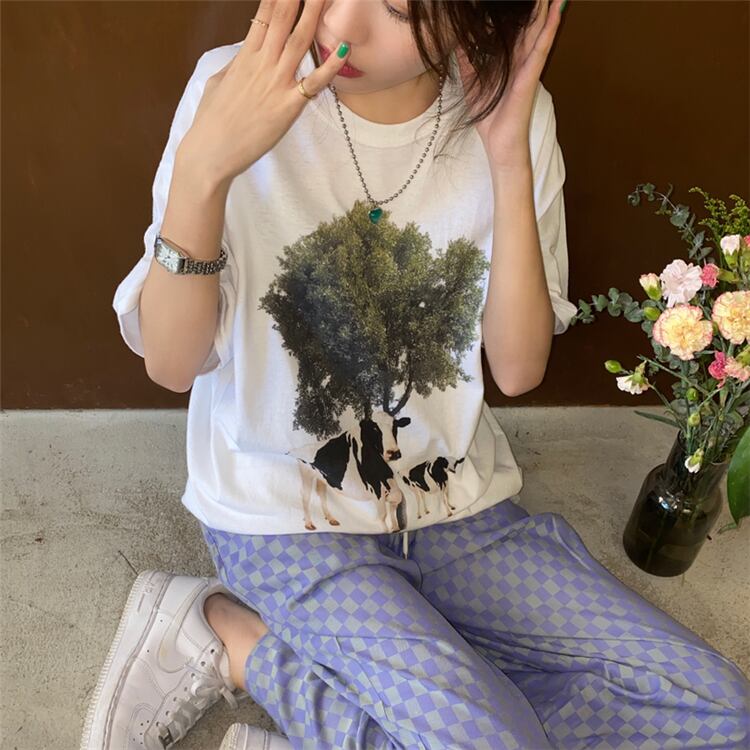 プリントTシャツ シャツ サマールーズトップス スタイル 夏物 kumikum58896915482
