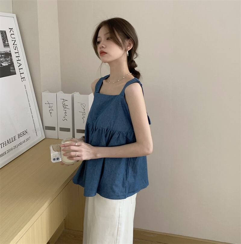 スタンダードトップス ノースリーブサマー薄手シャツ レトロ 夏物 kumikum78701698735