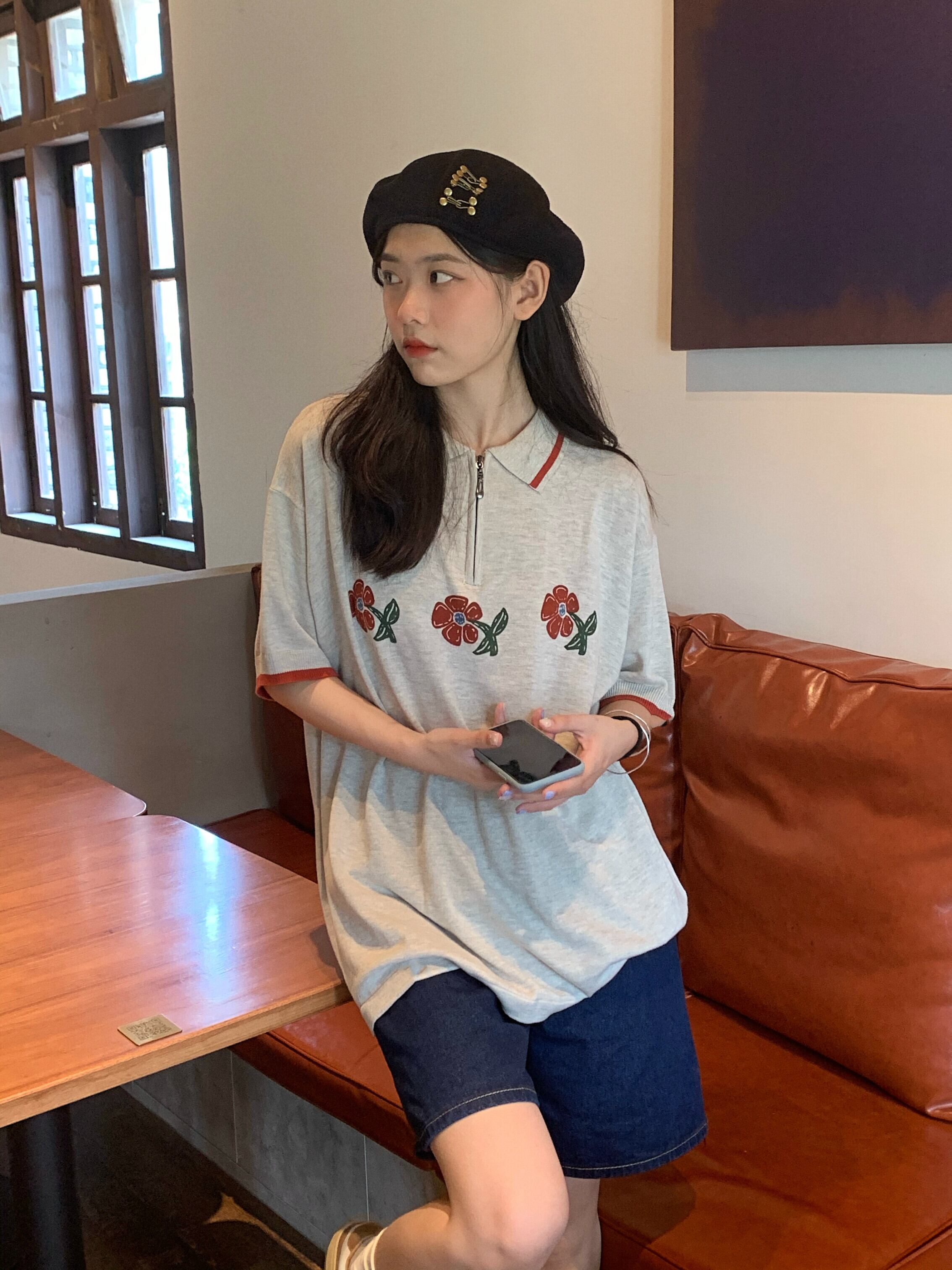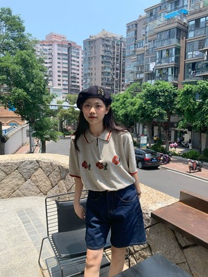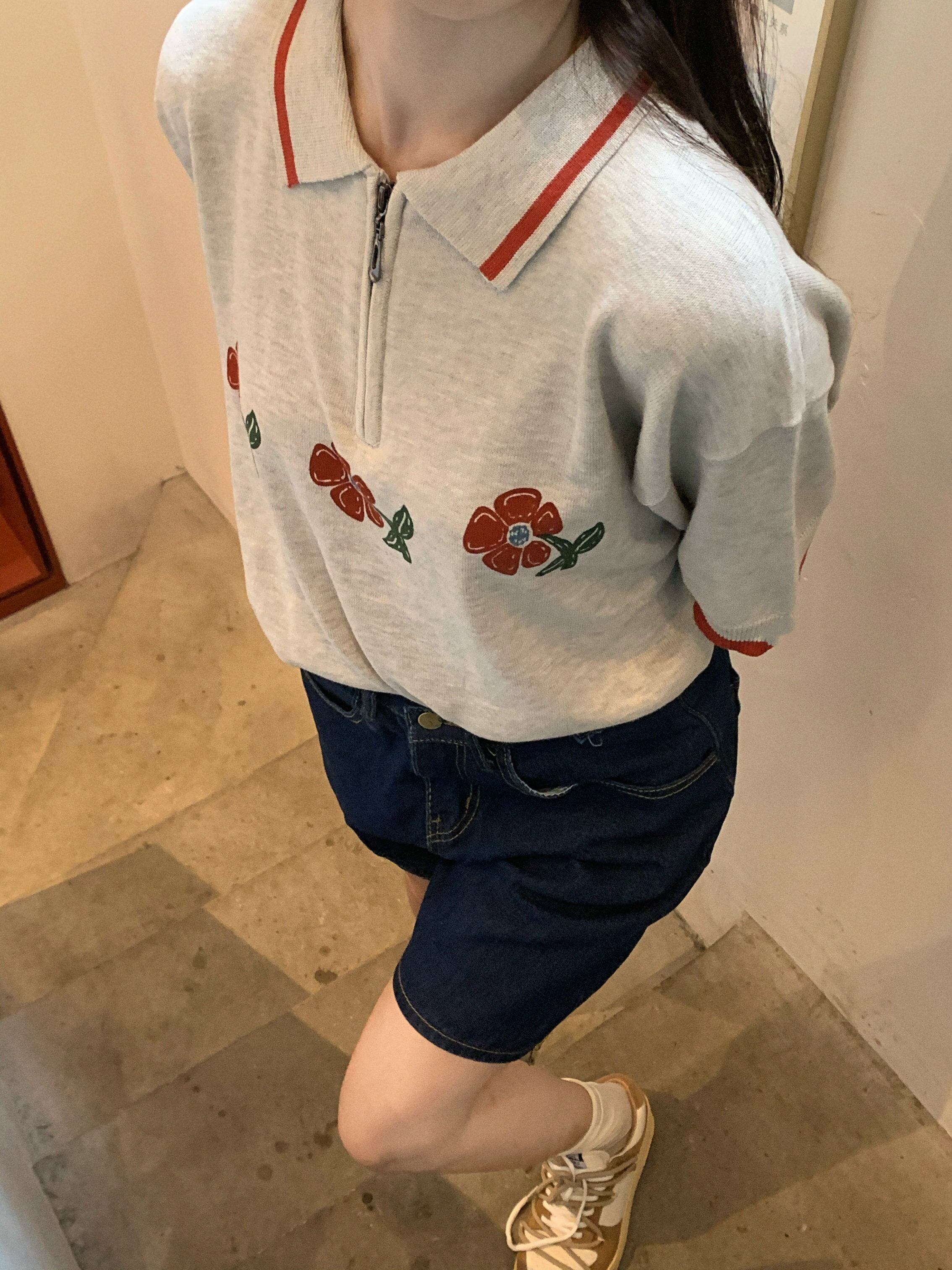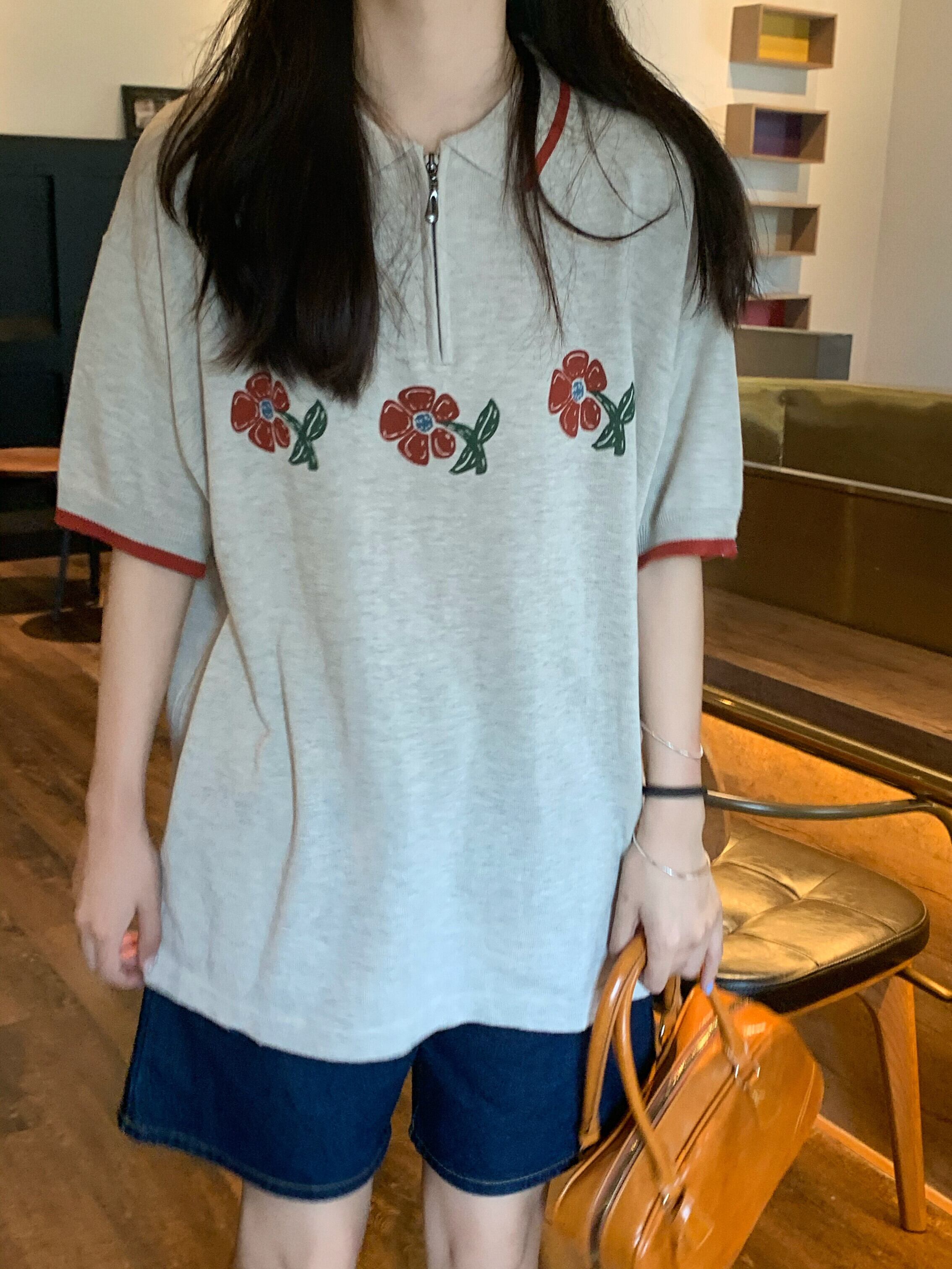 カラーFlowerデザイン セーター レディースサマー薄手スタイルルーズシャツ 夏物 フラワーデザイン kumikum23311795329